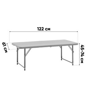 В коллекции удобной и функциональной мебели представлен складной пластиковый стол-книжка длиной столешницы 122 см и регулируемой высотой от 45 до 74 см. В сложенном виде модель занимает минимум места, что делает его идеальным для хранения или транспортировки в багажнике автомобиля, при этом вес модели – всего 8,2 кг. Благодаря этому стол можно использовать как для выездных деловых и праздничных мероприятий, так и в личных целях на собственной даче или в загородном доме.