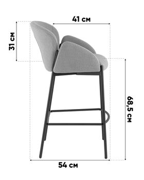 Дизайн и особенности. Эргономичная форма спинки с плавными изгибами подчеркивает современный стиль и поддерживает комфортную посадку. Подставка для ног интегрирована в конструкцию, делая стул идеальным для длительного использования в домашних и общественных пространствах. Общая высота модели — 93 см, что делает ее подходящей для барных стоек и кухонных островков.