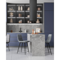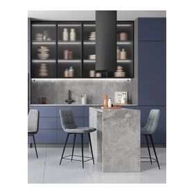 Лаконичный полубарный стул с обивкой из велюра без подлокотников. Плавная форма сиденья и спинки обеспечивают комфортную посадку. Красивая строчка на внутренней стороне велюровой обивки, эргономичная спинка, аккуратное исполнение и качественные материалы. Ножки выполнены из металла.