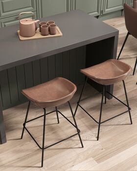 Минимализм с индустриальным акцентом Фуриоса — это идеальное воплощение лофт-эстетики и функционального дизайна. Коричневое сиденье из экокожи сочетается с чёрными металлическими ножками, создавая выразительный, но ненавязчивый образ, который легко впишется в современный интерьер.