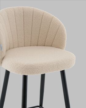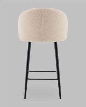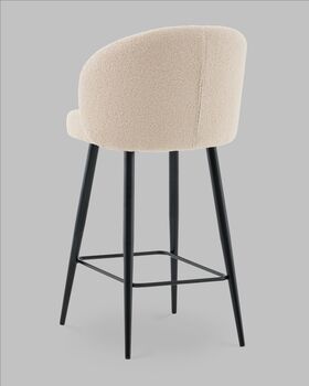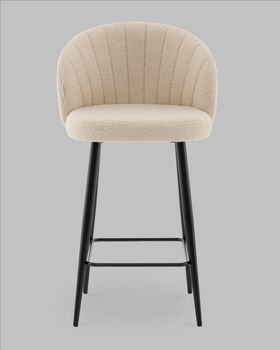 Полубарный стул Ханнингем моментально привлекает внимание своим современным дизайном и продуманной эргономикой. Мягкая обивка из букле выглядит особенно уютно и дорого, а изогнутая спинка с вертикальной декоративной простёжкой придаёт модели изящества и визуальной лёгкости. Такой элемент оформления напоминает веер и делает спинку визуально более объёмной и выразительной.