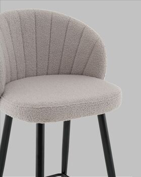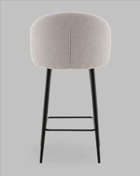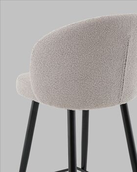 Полубарный стул Ханнингем моментально привлекает внимание своим современным дизайном и продуманной эргономикой. Мягкая обивка из букле выглядит особенно уютно и дорого, а изогнутая спинка с вертикальной декоративной простёжкой придаёт модели изящества и визуальной лёгкости. Такой элемент оформления напоминает веер и делает спинку визуально более объёмной и выразительной.