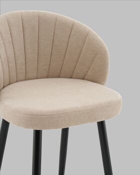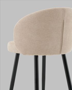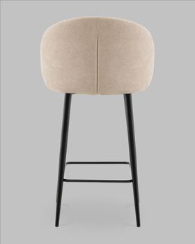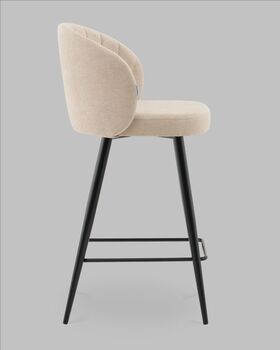 Полубарный стул Ханнингем моментально привлекает внимание своим современным дизайном и продуманной эргономикой. Мягкая обивка из велюра выглядит особенно уютно и дорого, а изогнутая спинка с вертикальной декоративной простёжкой придаёт модели изящества и визуальной лёгкости. Такой элемент оформления напоминает веер и делает спинку визуально более объёмной и выразительной.