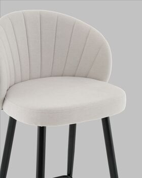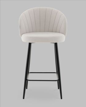 Полубарный стул Ханнингем моментально привлекает внимание своим современным дизайном и продуманной эргономикой. Мягкая обивка из велюра выглядит особенно уютно и дорого, а изогнутая спинка с вертикальной декоративной простёжкой придаёт модели изящества и визуальной лёгкости. Такой элемент оформления напоминает веер и делает спинку визуально более объёмной и выразительной.