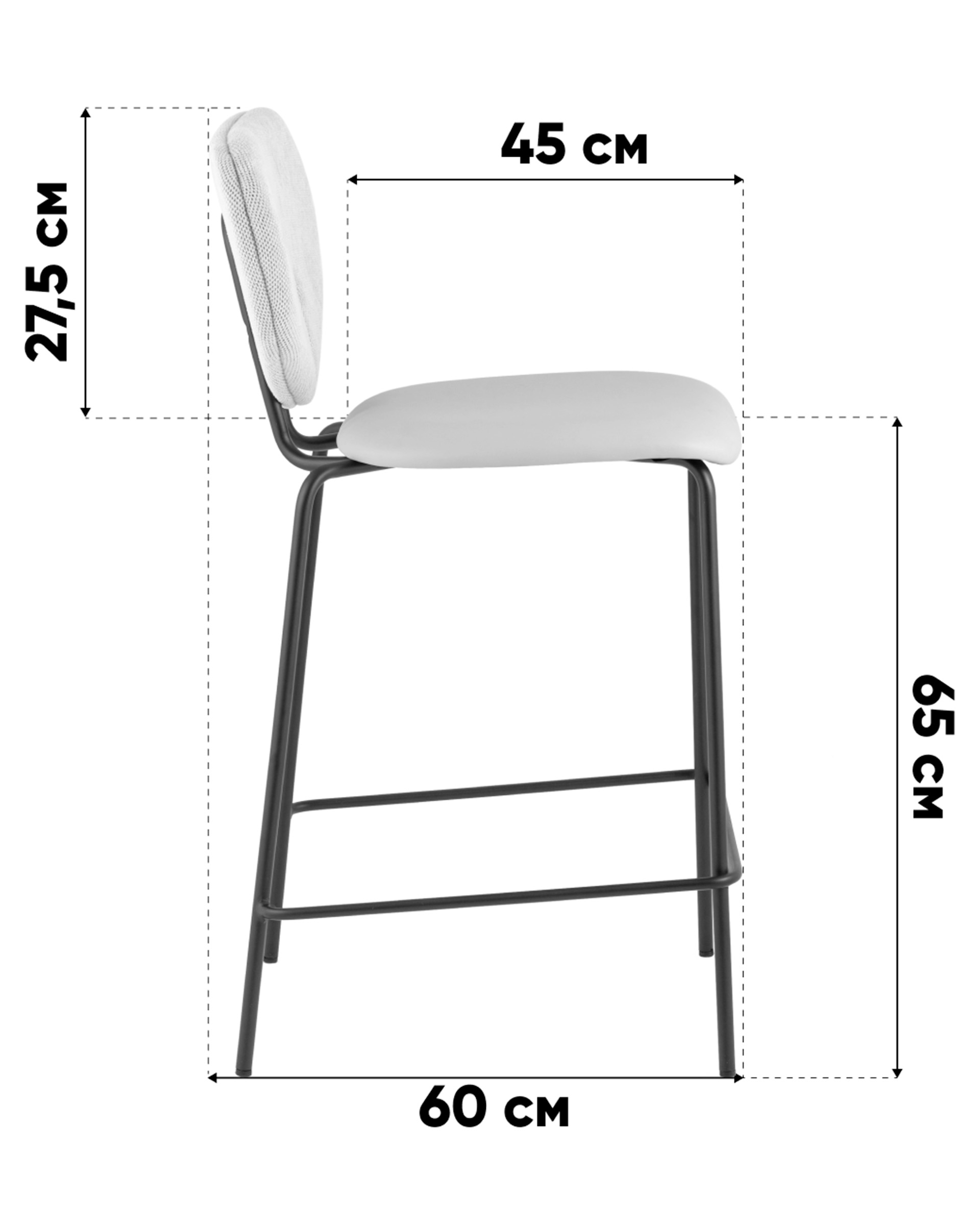 Дизайн и декоративные элементы. Лаконичная форма спинки с мягкой обивкой и округленные линии сиденья обеспечивают удобную посадку. Отсутствие подлокотников визуально облегчает конструкцию, делая её подходящей для компактных пространств. Подставка для ног добавляет удобства, особенно при использовании у барных стоек.