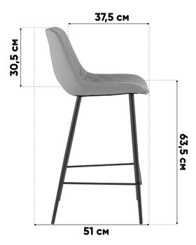 Комфортная посадка обеспечивается за счет широкого сиденья и плавной спинки. Эргономичные формы барного стула позволяют длительное время поддерживать положение осанки в комфортном положении. Декоративная стяжка подчеркивает стильный дизайн стула и добавляет мягкость сиденью. Прочный металлический каркас выдерживает нагрузку до 120 кг. Четыре металлических ножки оснащены подножкой для удобного положения ног.