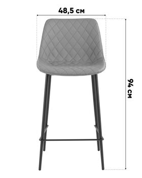 Комфортная посадка обеспечивается за счет широкого сиденья и плавной спинки. Эргономичные формы барного стула позволяют длительное время поддерживать положение осанки в комфортном положении. Декоративная стяжка подчеркивает стильный дизайн стула и добавляет мягкость сиденью. Прочный металлический каркас выдерживает нагрузку до 120 кг. Четыре металлических ножки оснащены подножкой для удобного положения ног.