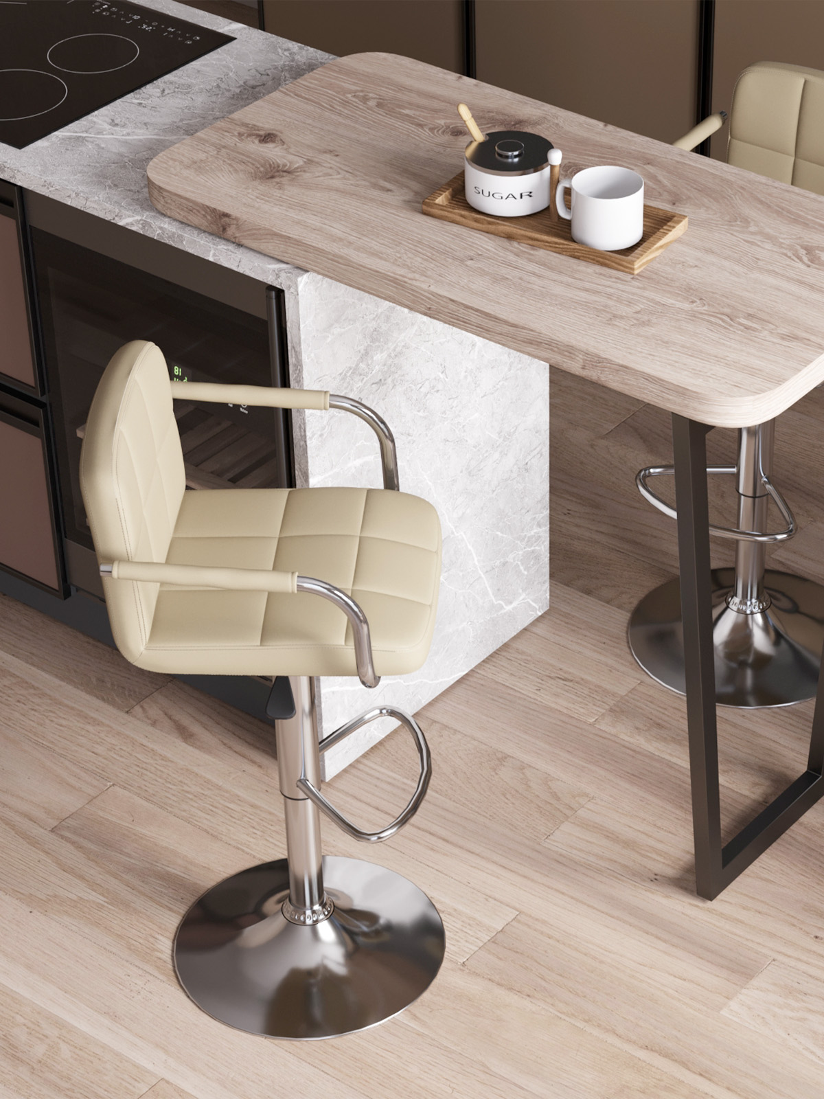 Материалы: хромированный металл, газ-лифт, фанера, искусственная кожа PU. Регулировка высоты 63-83 см.