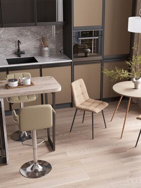 Изысканный и лаконичный барный стул «Малави» – это идеальный вариант для домашней кухни, бара, ночного клуба, салона красоты или парикмахерской. Прочнейший каркас этого изделия в стиле баухаус изготовлен из хромированного металла, что одновременно и практично, и эстетично. Долговечная обивка из экокожи не требует особого ухода и легко очищается от загрязнений. Высота изделия регулируется в пределах 20 см. Устойчивая база из стали диаметром 385 мм обеспечивает безопасное использование. Поворотно-подъемный механизм газ-лифт выдерживает нагрузку до 120 кг.