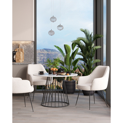 Изящный стул с комфортным сиденьем и спинкой. Основание и ножки черного матового цвета изготовлены из прочного металла. Обивка выполнена из прочной ткани с мягким ворсом в стиле букле, необычная фактура и мягкость добавляют стулу больше уюта.