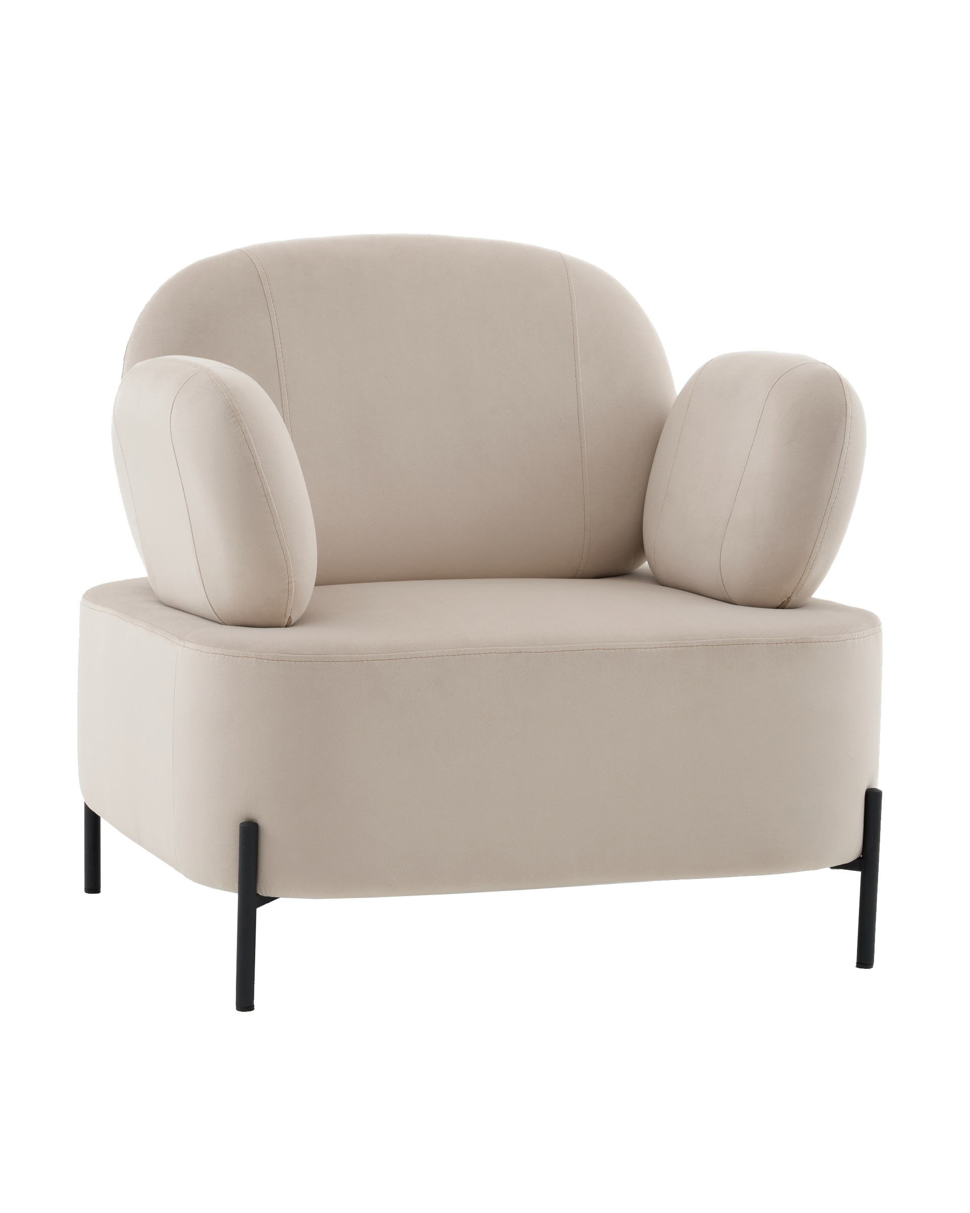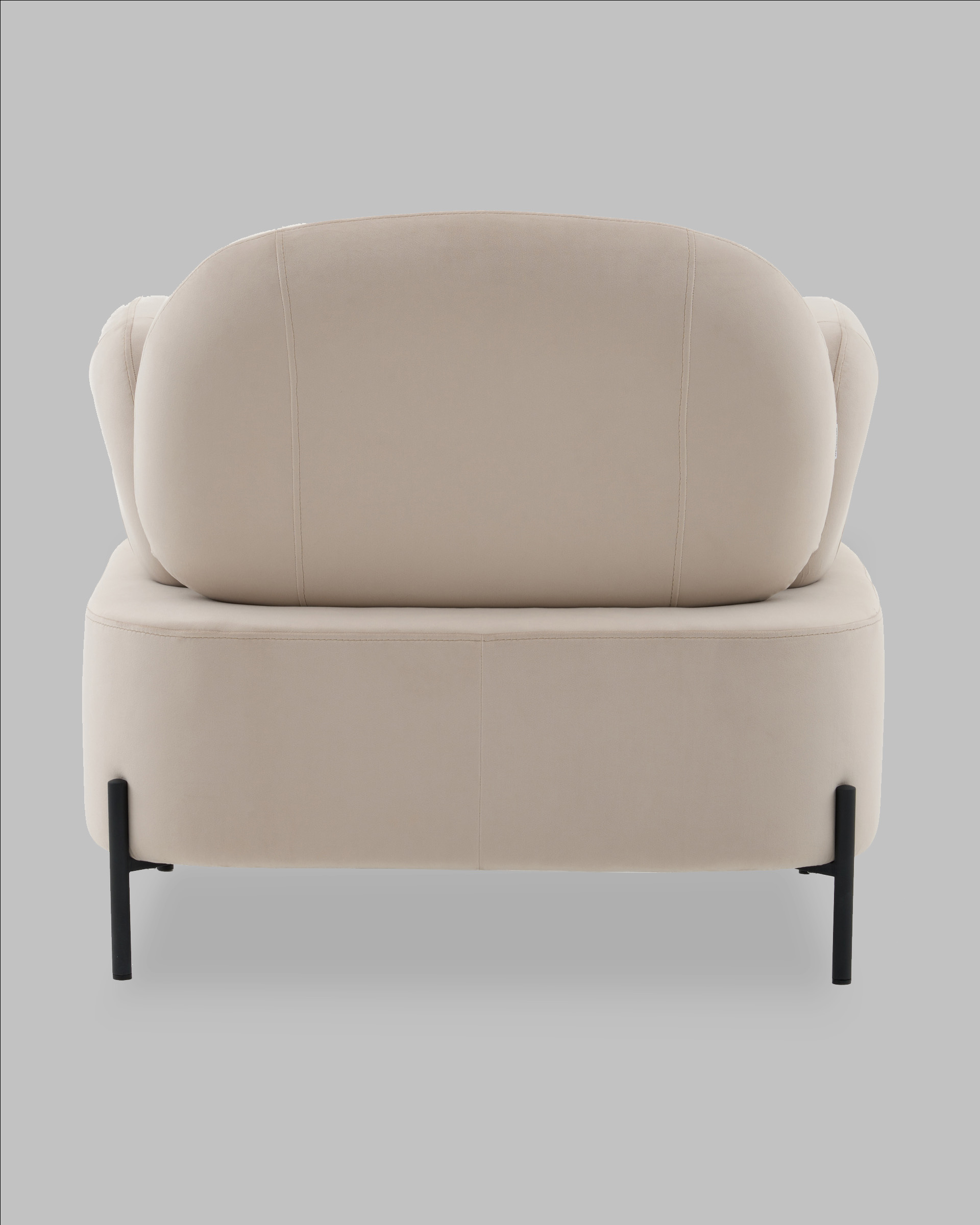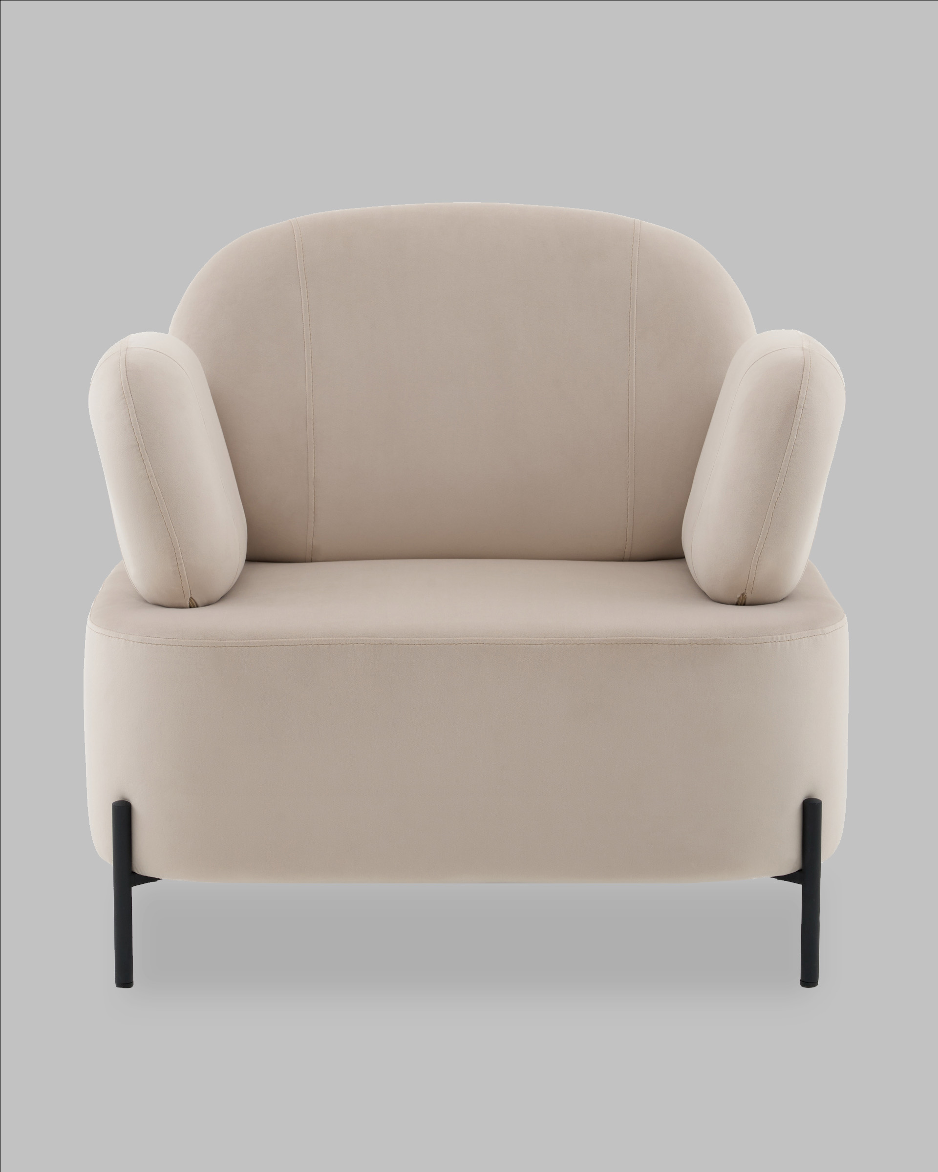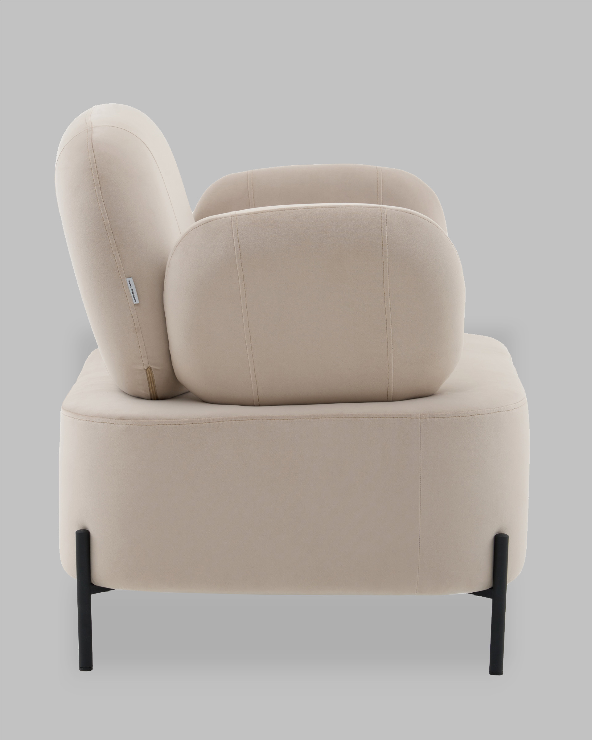 Мягкое кресло Кэнди имеет оригинальный стиль исполнения и способно стать частью любого современного интерьера. Эргономичный дизайн спинки и подлокотников обеспечит долгий и комфортный отдых. Обивка выполнена из простого в уходе велюра - мягкого и нежного на ощупь. В качестве внутреннего наполнителя использован ППУ повышенной жесткости. Каркас металлический с максимальной допустимой нагрузкой до 110 кг. Ножки выполнены в черном цвете и оснащены специальными подпятниками, которые препятствуют скольжению и предотвращают царапанье напольного покрытия. Высота спинки от сидения 43 см.
