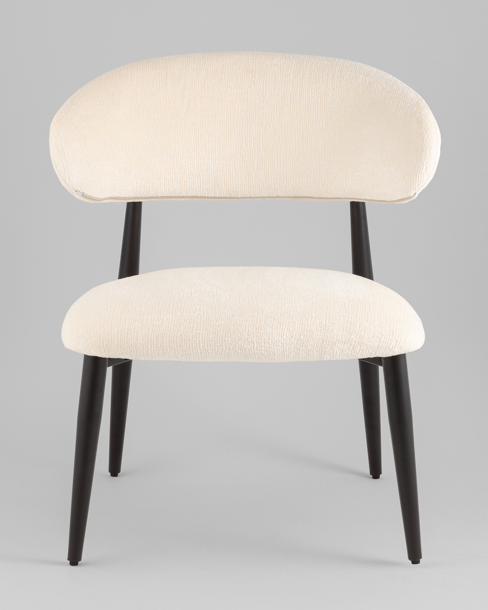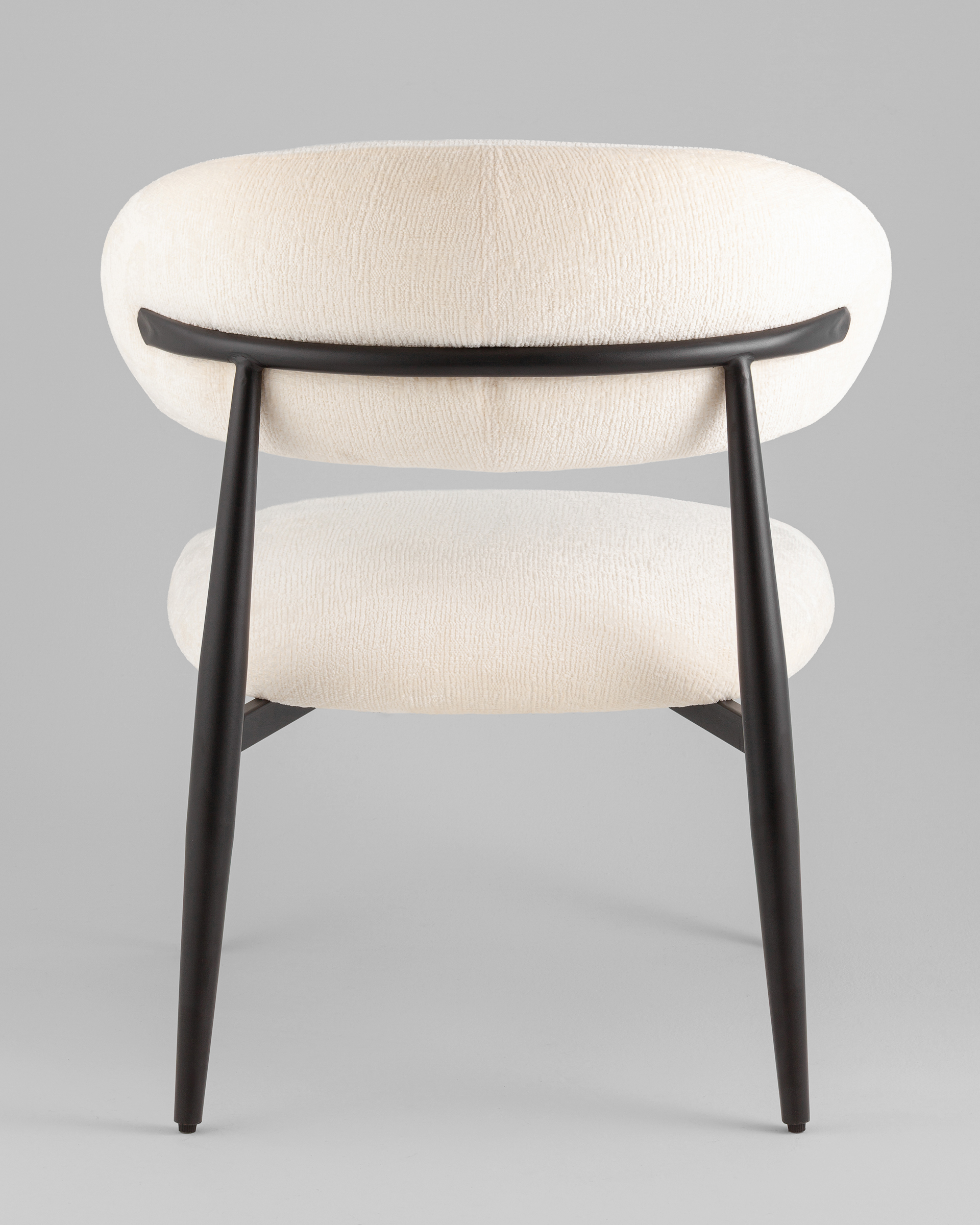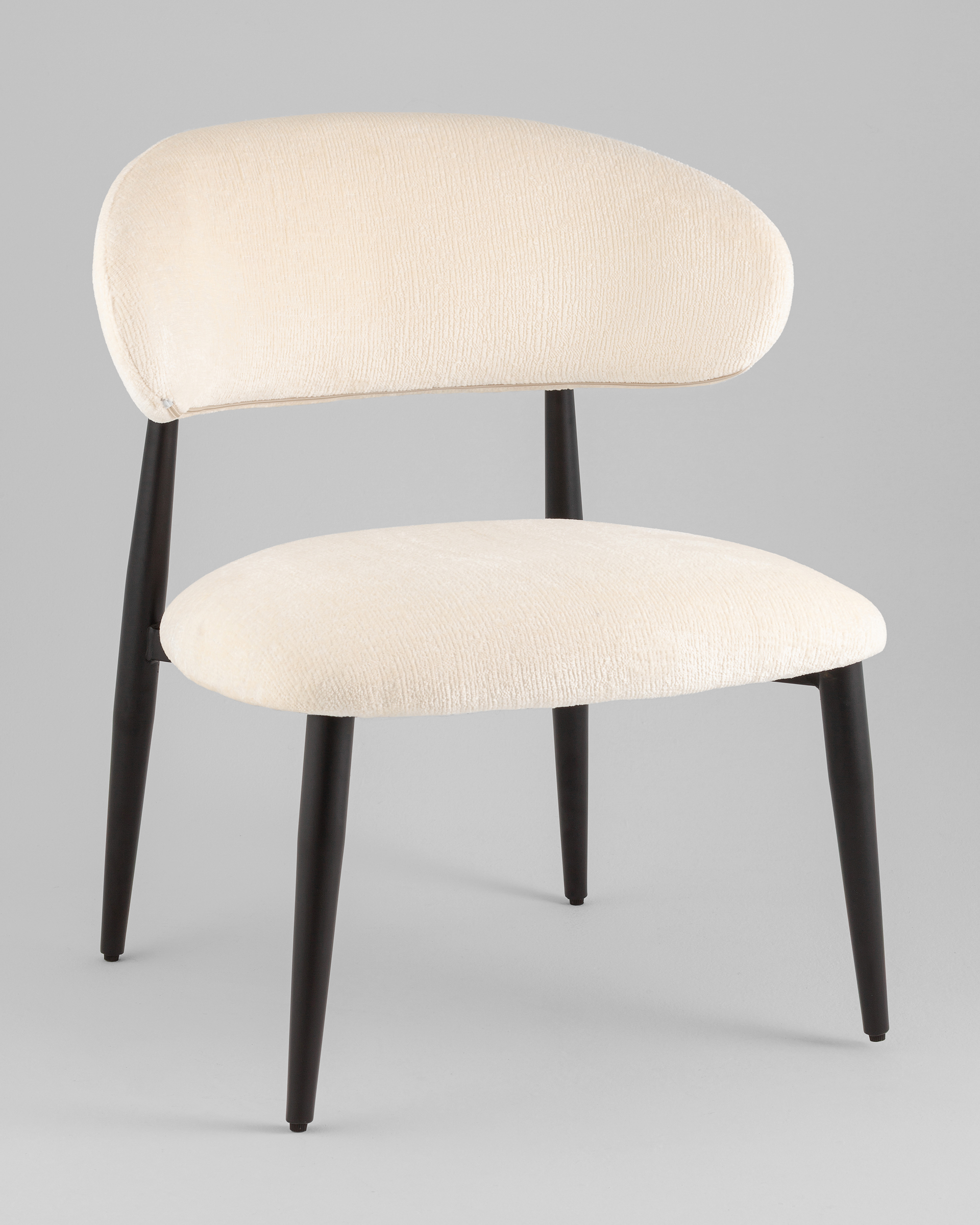 Полукруглая спинка поддерживает поясницу и позволяет удобно расположиться, а широкое сиденье обеспечивает расслабленную посадку. Металлические ножки с подпятниками защищают напольное покрытие и выдерживают нагрузку до 120 кг — кресло не только красиво, но и практично.