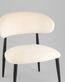 Кресло Ayla — это лаконичный дизайн с мягкими линиями и скандинавским характером. Его округлая спинка и просторное сиденье обеспечивают максимальный комфорт, а черные металлические ножки добавляют устойчивости и визуального контраста. Стиль модели можно отнести к современному минимализму — актуальное решение для тех, кто ценит эстетику и функциональность.