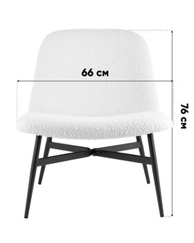 Обивка из букле, мягкая и тактильно приятная, создаёт уютную атмосферу и подчеркивает современный характер мебели. Металлический каркас и ножки в чёрном цвете обеспечивают прочность, стабильность и визуальный контраст. Спинка с наклоном и мягкое сиденье гарантируют удобство для отдыха или длительного пребывания.