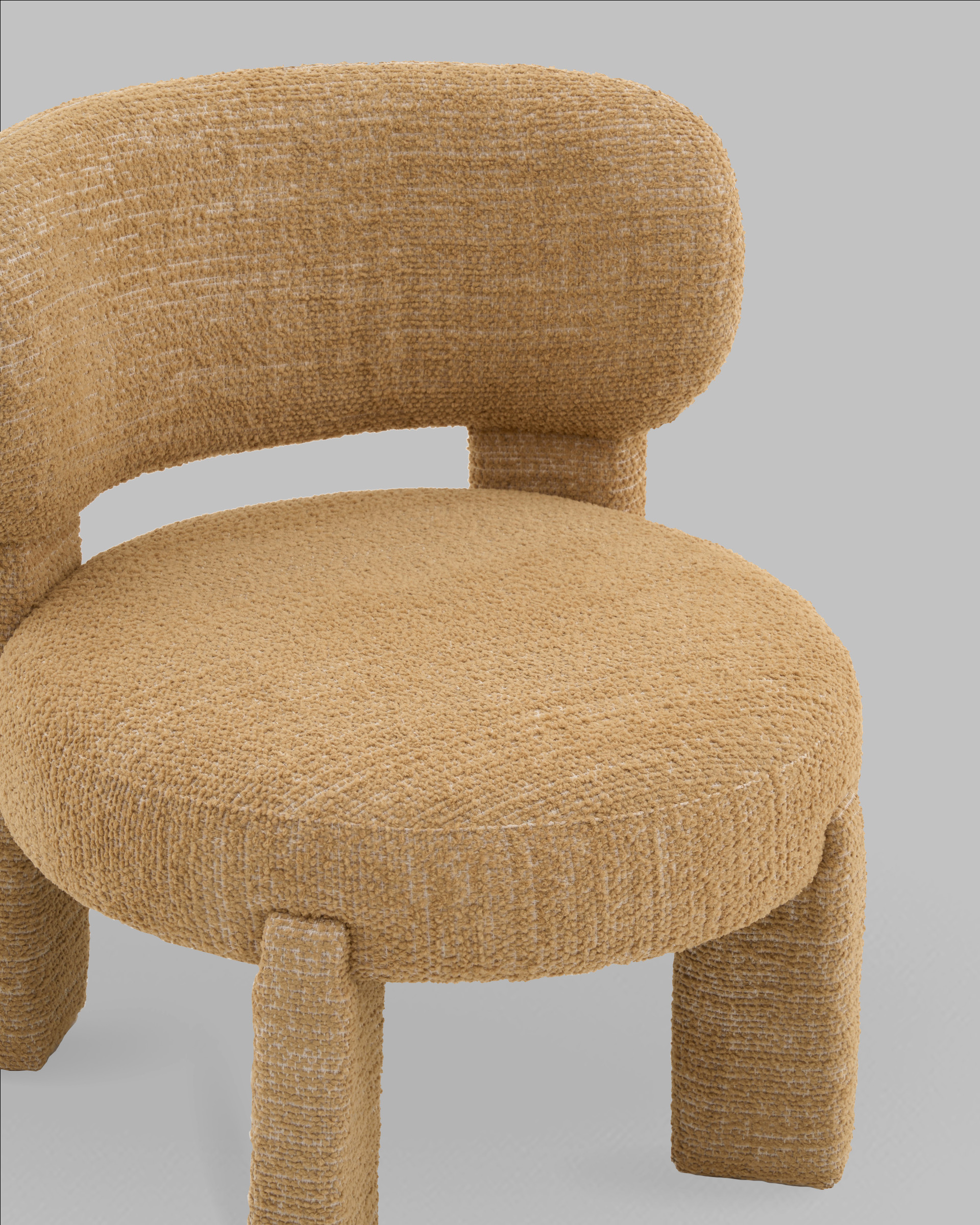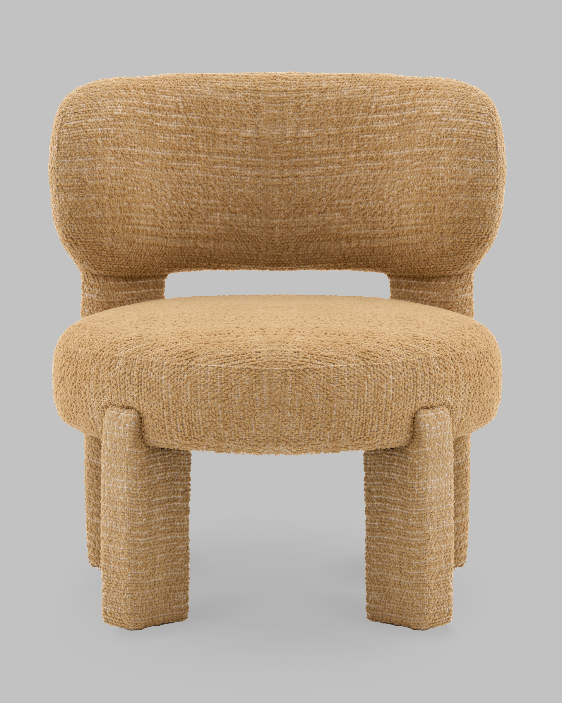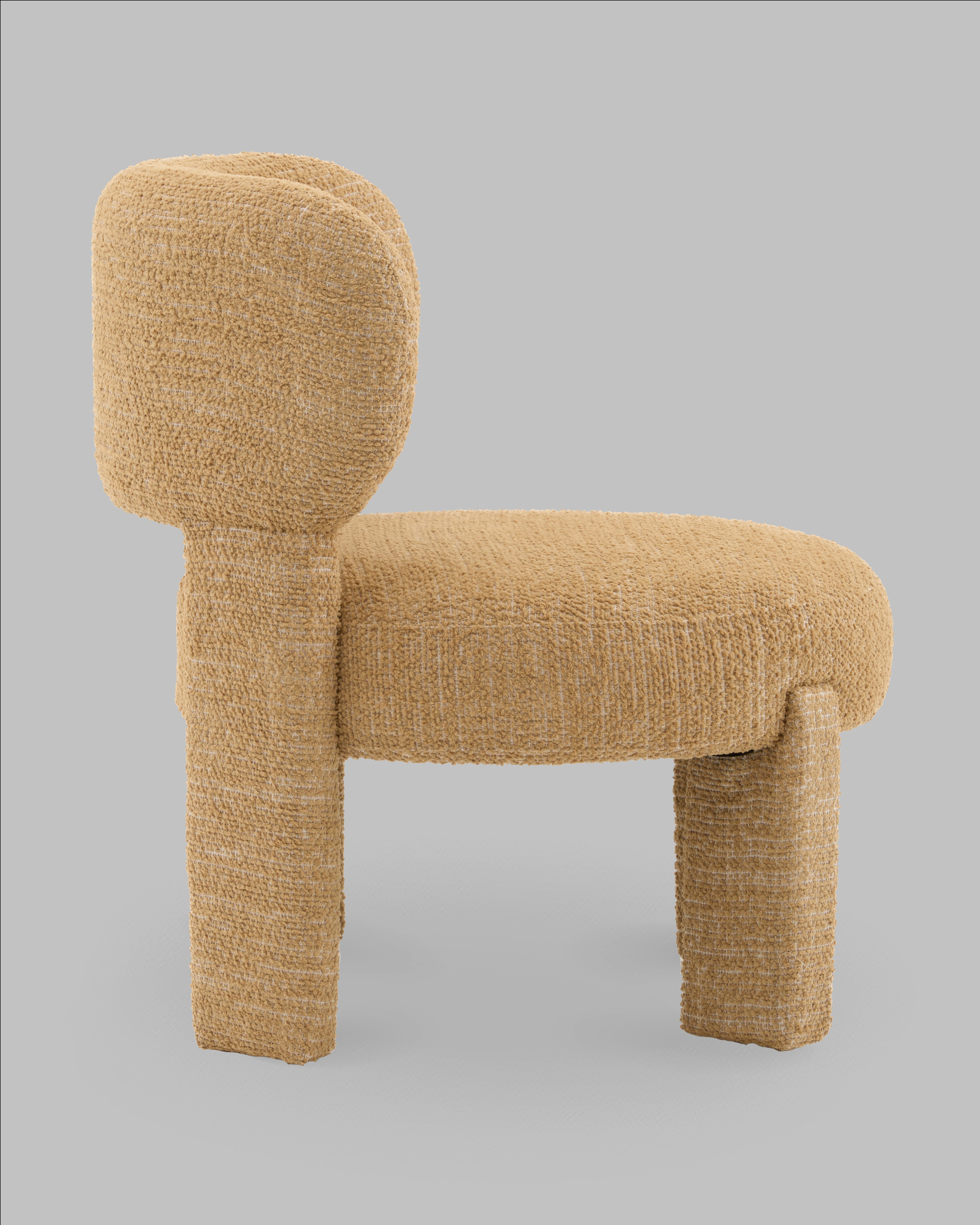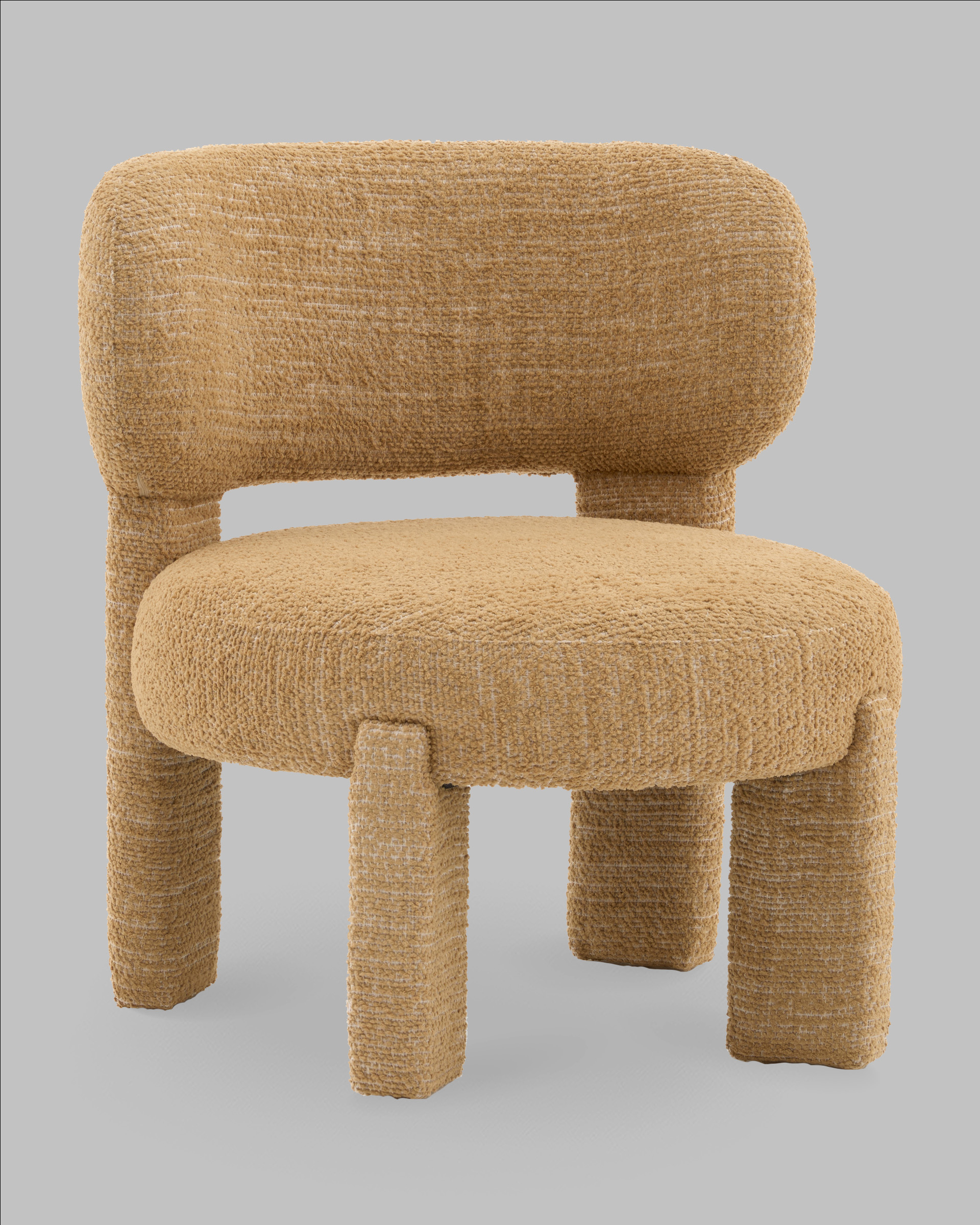 Современный силуэт Кресло моментально привлекает внимание благодаря выразительной геометрии и массивным фигурным ножкам. Закруглённая спинка и мягкие линии придают модели уютный и эффектный вид. Оттенок горчицы оживляет пространство, становясь ярким интерьерным акцентом.