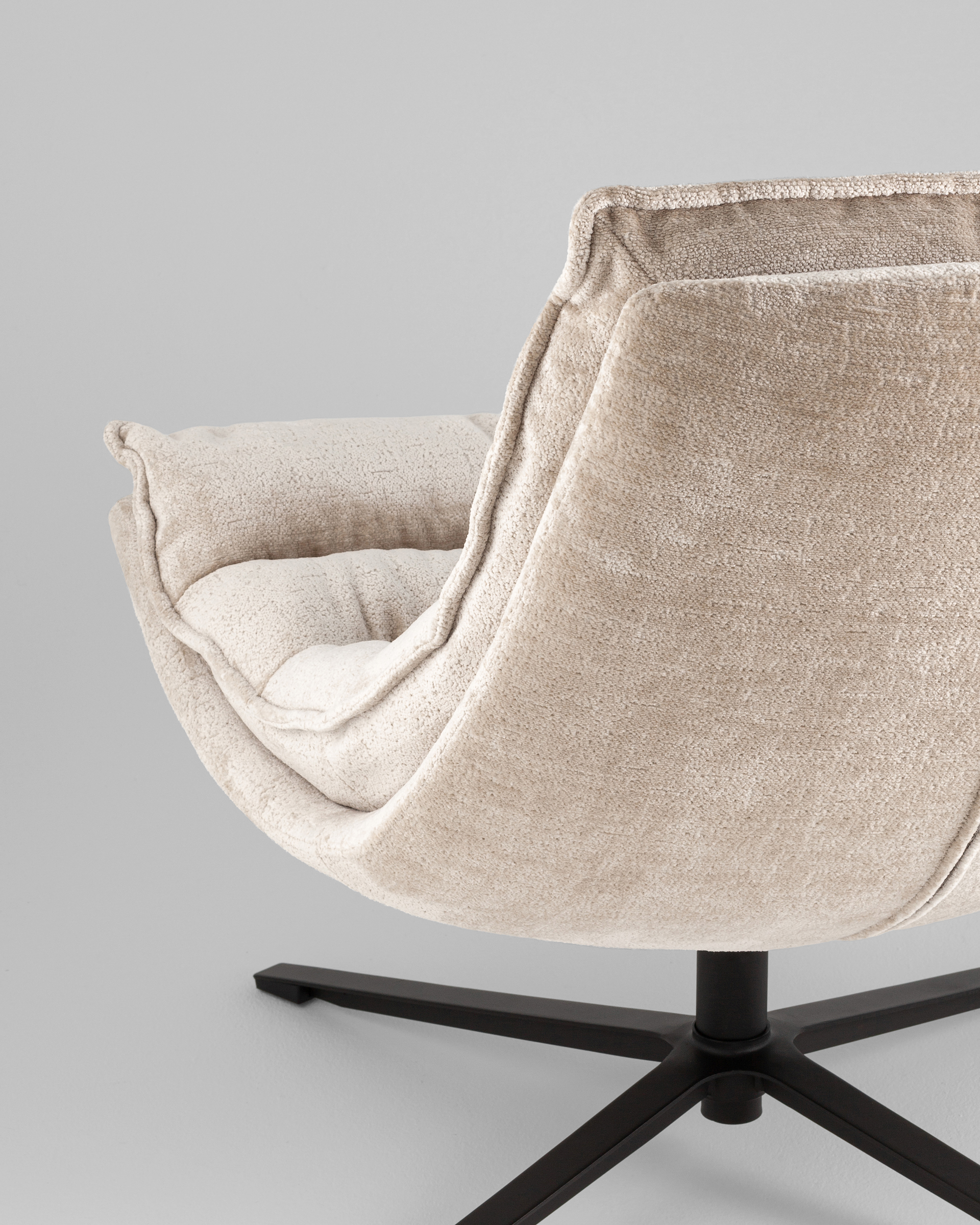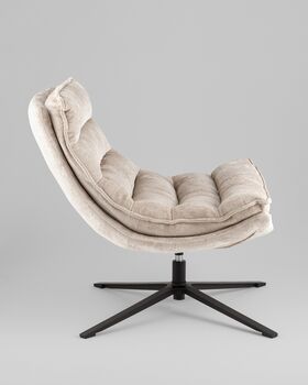 Скрещенные металлические ножки обеспечивают прочность, выдерживая до 120 кг. Кресло Lazy идеально впишется в гостиные, кухни-студии, офисные лаунж-зоны и общественные места, создавая уют и стиль.