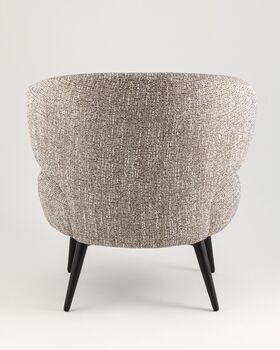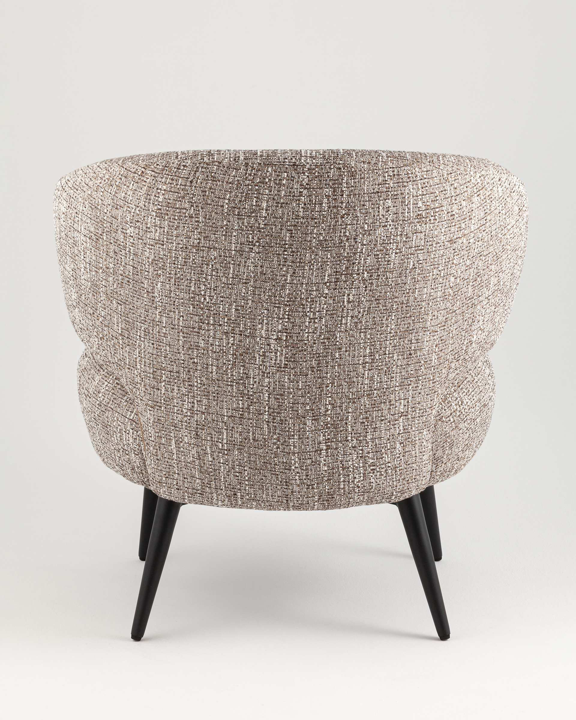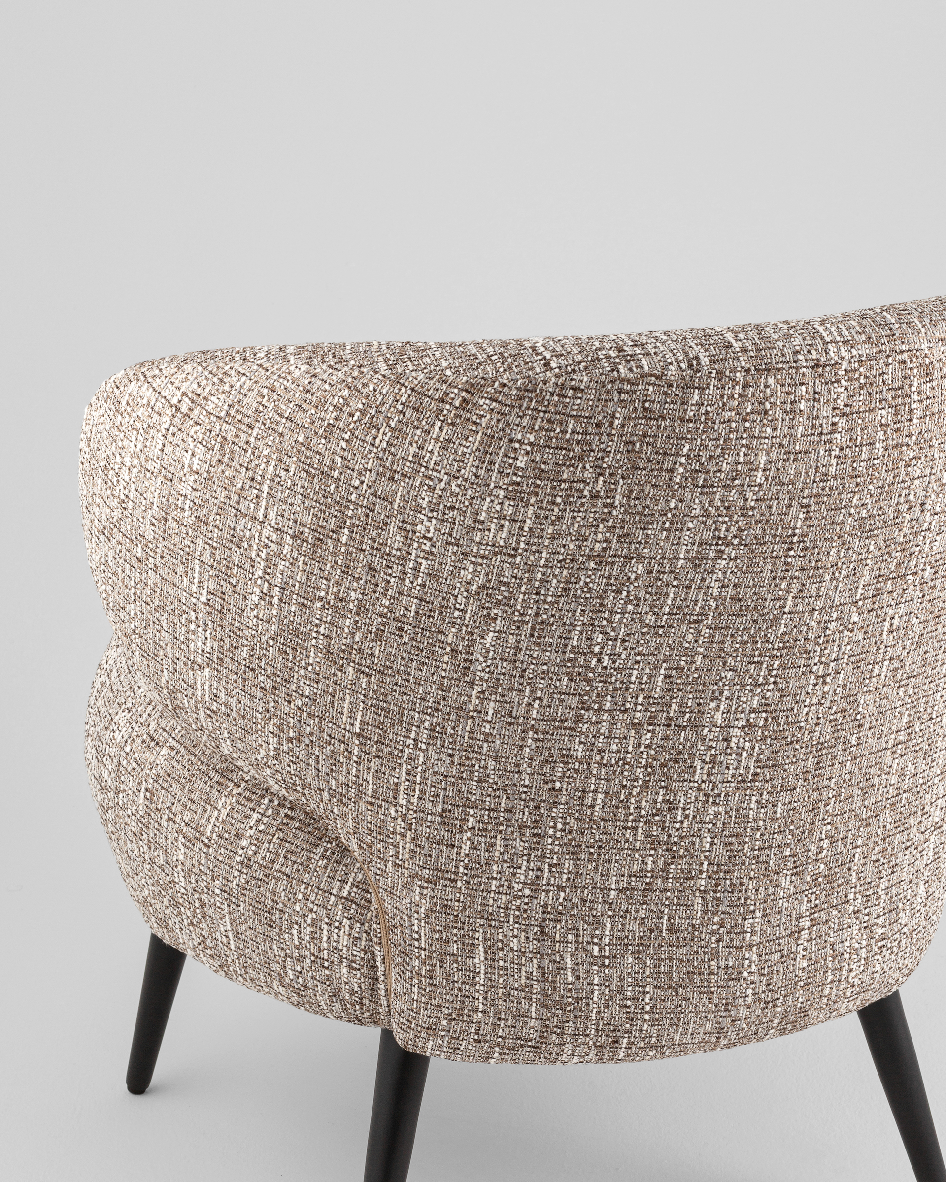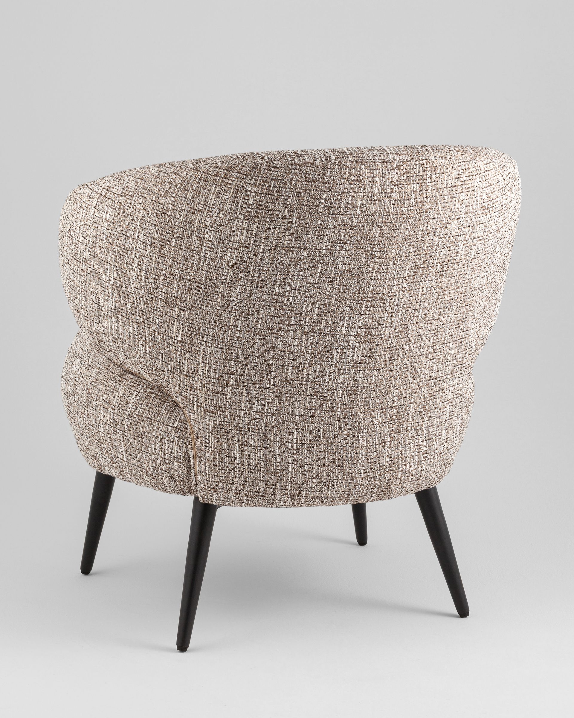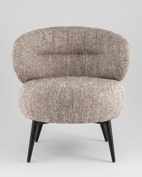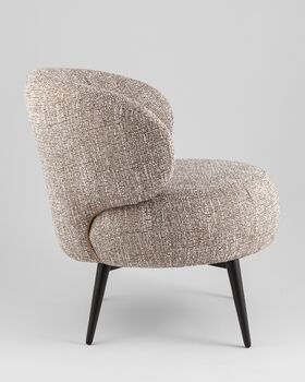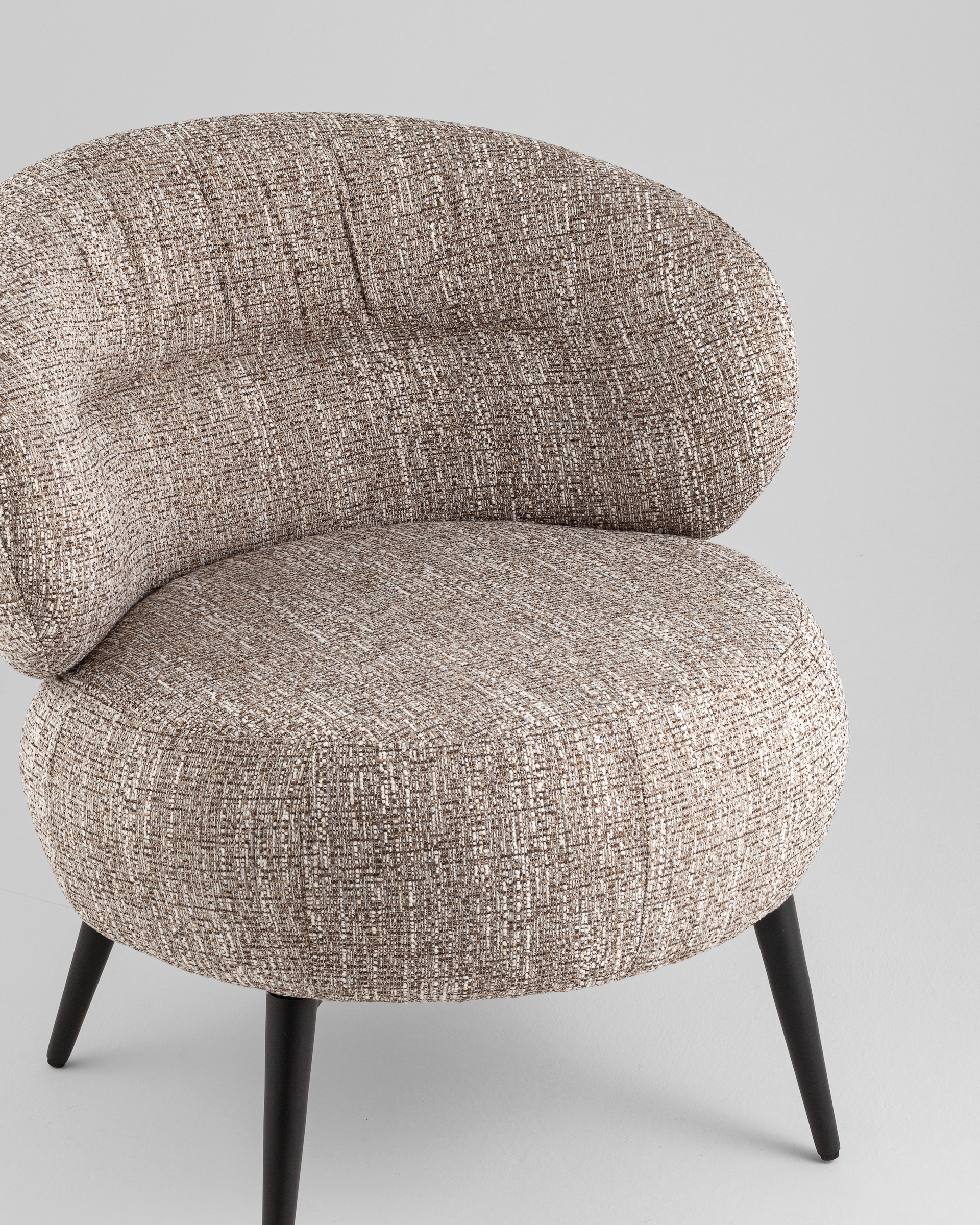 Кресло Rivo выполнено в современном дизайнерском стиле: плавные линии, округлые формы и компактные пропорции делают его элегантным акцентом в интерьере. Полукруглая спинка и широкое сиденье создают ощущение уюта и расслабленности, а тонкие металлические ножки добавляют визуальной лёгкости конструкции.