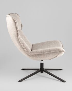 Обивка выполнена из ткани букле, которая отличается выразительной текстурой, мягкостью и высокой износостойкостью, при этом визуально добавляет интерьеру уюта и тепла. Внутри кресла используется плотный поролон, который обеспечивает мягкость и надёжную поддержку.