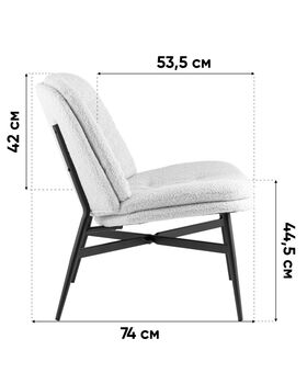 Широкое сиденье (67,5 см) и мягкая спинка обеспечат удобство даже при длительном сидении. Металлические ножки гарантируют устойчивость и выдерживают нагрузку до 120 кг, что делает кресло надежным и долговечным.