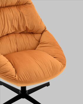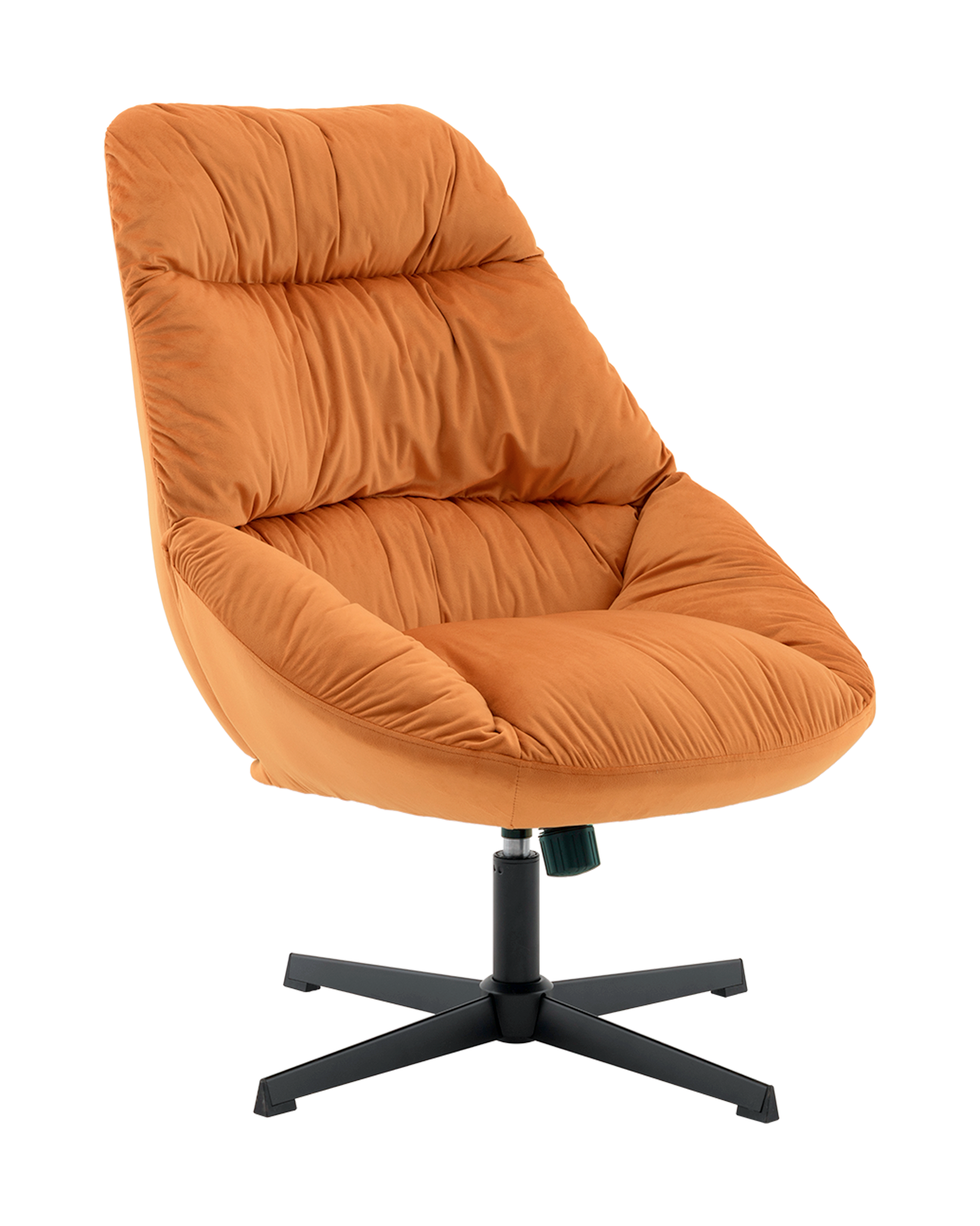 Особенности дизайна и материалы. В качестве обивки используется высокопрочная ткань — велюр. Эта ткань не только приятна на ощупь, но и отличается износостойкостью и гигроскопичностью. Она быстро восстанавливает свою форму после механических воздействий или намокания. Мягкое сиденье с высокой анатомической спинкой подарит максимальный комфорт и уют, позволяя расслабиться даже при длительном сидении. Сочетание черного каркаса и терракотовой велюровой обивки с красивой отдекорированной строчкой на спинке подчеркивает элегантность данной модели.