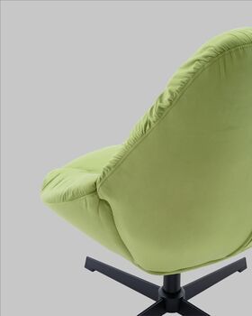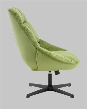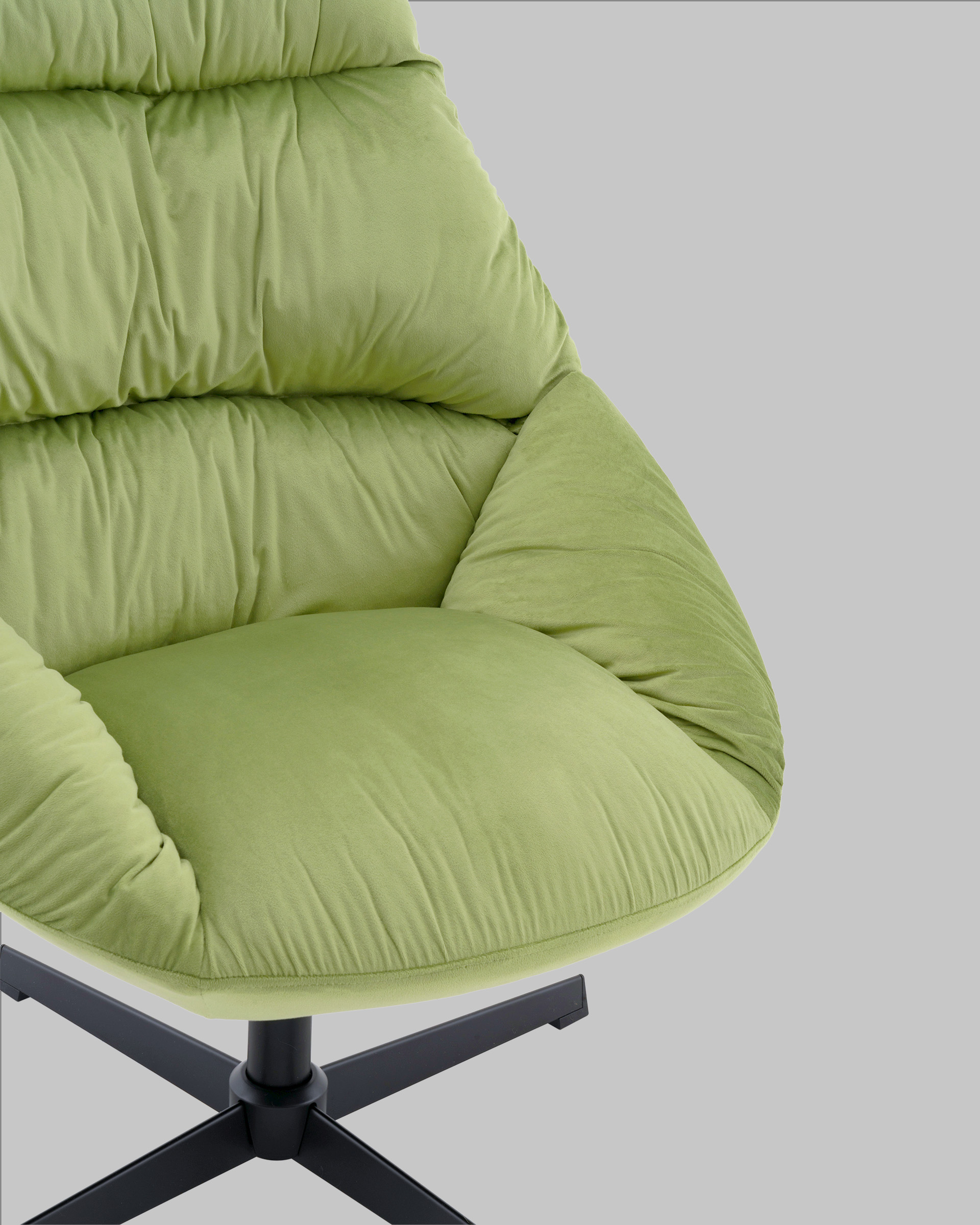 Особенности дизайна и материалы. В качестве обивки используется высокопрочная ткань — велюр. Эта ткань не только приятна на ощупь, но и отличается износостойкостью и гигроскопичностью. Она быстро восстанавливает свою форму после механических воздействий или намокания. Мягкое сиденье с высокой анатомической спинкой подарит максимальный комфорт и уют, позволяя расслабиться даже при длительном сидении. Сочетание черного каркаса и травяной велюровой обивки с красивой отдекорированной строчкой на спинке подчеркивает элегантность данной модели.