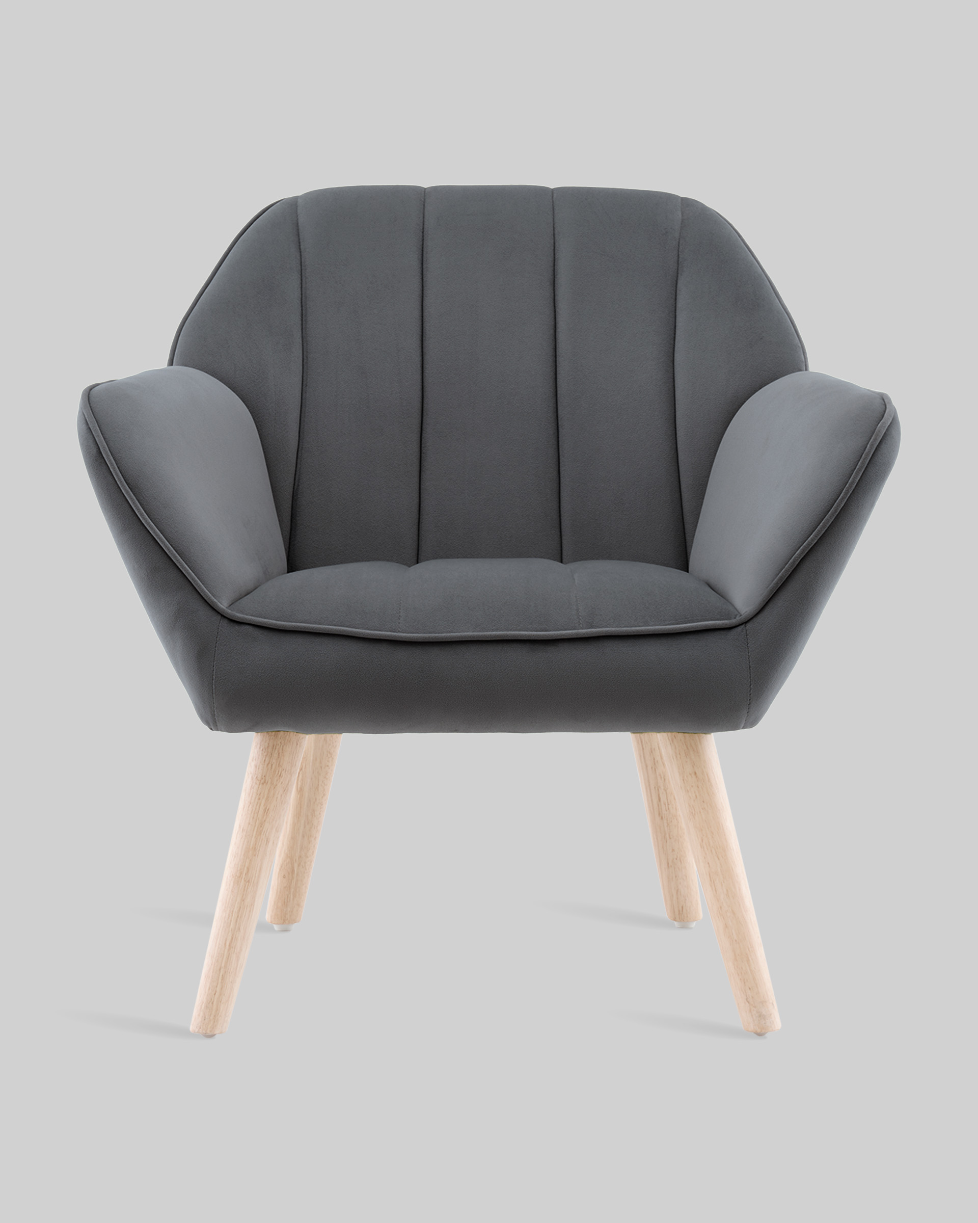 Кресло Руди в сером цвете — идеальный элемент для стильной гостиной, спальни или зоны отдыха. Универсальный серый оттенок велюровой обивки легко вписывается в любые интерьеры — от скандинавского до минимализма. Благодаря своим габаритам (75×79×72 см), кресло обеспечит комфортное размещение даже в компактном пространстве.