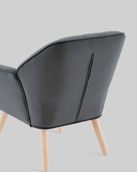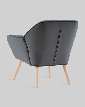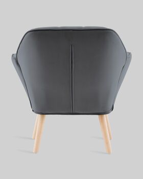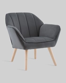 Каркас и ножки изготовлены из массива гевеи — прочной древесины с благородной текстурой. Светлый оттенок дерева эффектно контрастирует с серой обивкой. Максимальная нагрузка на кресло составляет 120 кг.