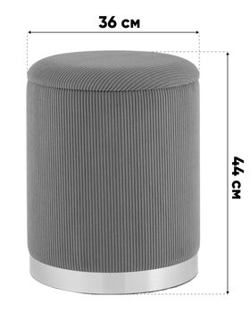 Особенности и комфорт. Пуф оснащен полностью съемной крышкой, что делает его не только удобным для сиденья, но и функциональным для хранения. Обивка украшена декоративными оборками, а металлический декор в основании в серебряном цвете добавляет стильный акцент.