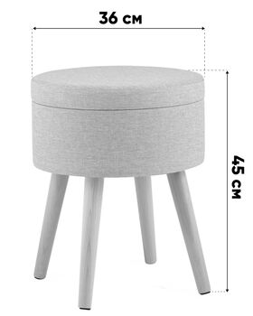 Дизайн и комфорт. Мягкое сиденье и компактные ножки делают этот пуф не только удобным, но и стильным элементом вашего пространства. Ящик для хранения под крышкой позволяет скрывать мелкие вещи, поддерживая порядок в комнате. Защитные накладки на ножках помогают избежать повреждений пола.