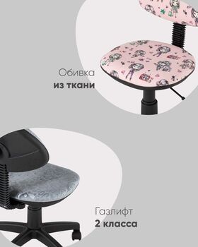 Удобное и компактное детское компьютерное кресло. Эргономичная форма спинки оказывает хорошую поддержку. Обивка сиденья выполнена из мягкого текстиля. Кресло имеет регулировку по высоте от 45 см до 59 см. Благодаря отсутствию подлокотников кресло можно полностью задвинуть под любой письменный стол. Диаметр крестовины - 54 см.