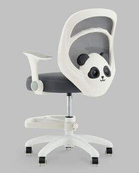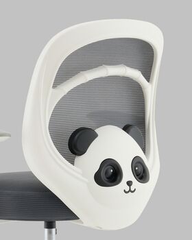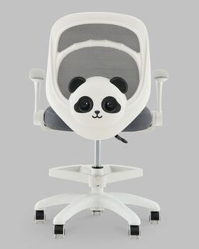 Задняя часть спинки украшена фигуркой панды — стильным акцентом, который украсит любую детскую комнату. Светлая обивка из сетки в сером цвете гармонирует с белым корпусом, придавая креслу свежий и аккуратный вид.