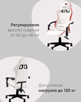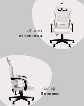Материал и комфорт.Обивка выполнена из мягкой и прочной экокожи, которая устойчива к износу и проста в уходе. Две ортопедические подушки поддерживают шею и поясницу, предотвращая усталость при долгом сидении. Мягкие подлокотники обеспечивают дополнительный комфорт для рук.
