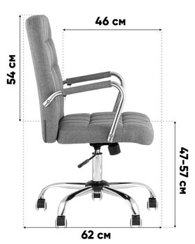Кресло оснащено механизмом топ-ган, который поддерживает функцию качания и помогает расслабиться в течение дня. Газлифт 3-го класса позволяет регулировать высоту сиденья в диапазоне от 47 до 57 см, подстраиваясь под индивидуальные потребности пользователя. Металлическая крестовина гарантирует прочность, а нейлоновые ролики плавно передвигаются по поверхности, защищая её от повреждений.