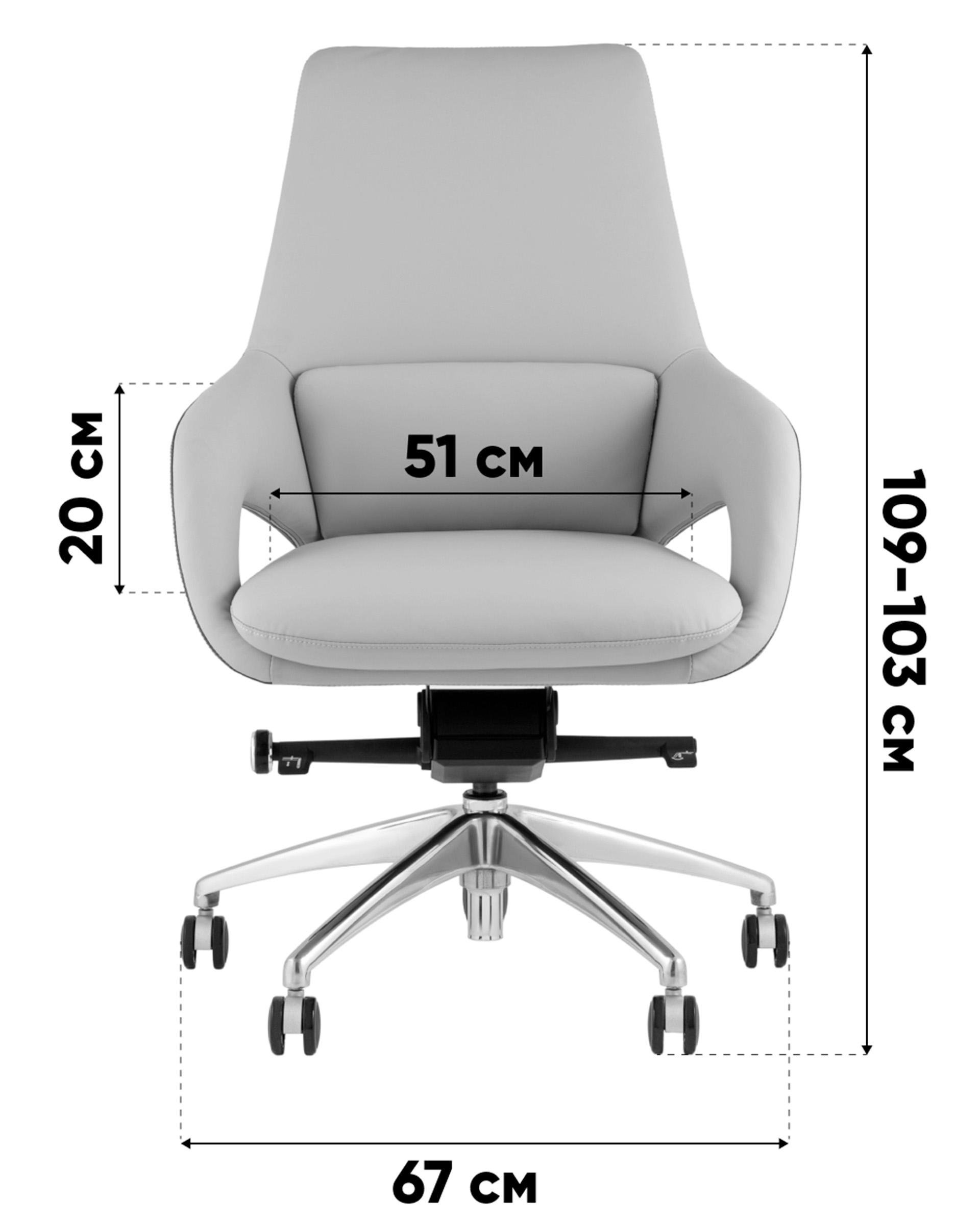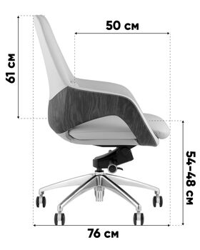 Материалы и цвета. Кресло выполнено из высококачественной экокожи бежевого цвета, которая придает модели солидный и стильный вид. Спинка снаружи декорирована узором под дерево, добавляя уникальности и изысканности дизайну. Крестовина изготовлена из прочного алюминия, что гарантирует устойчивость и долговечность.