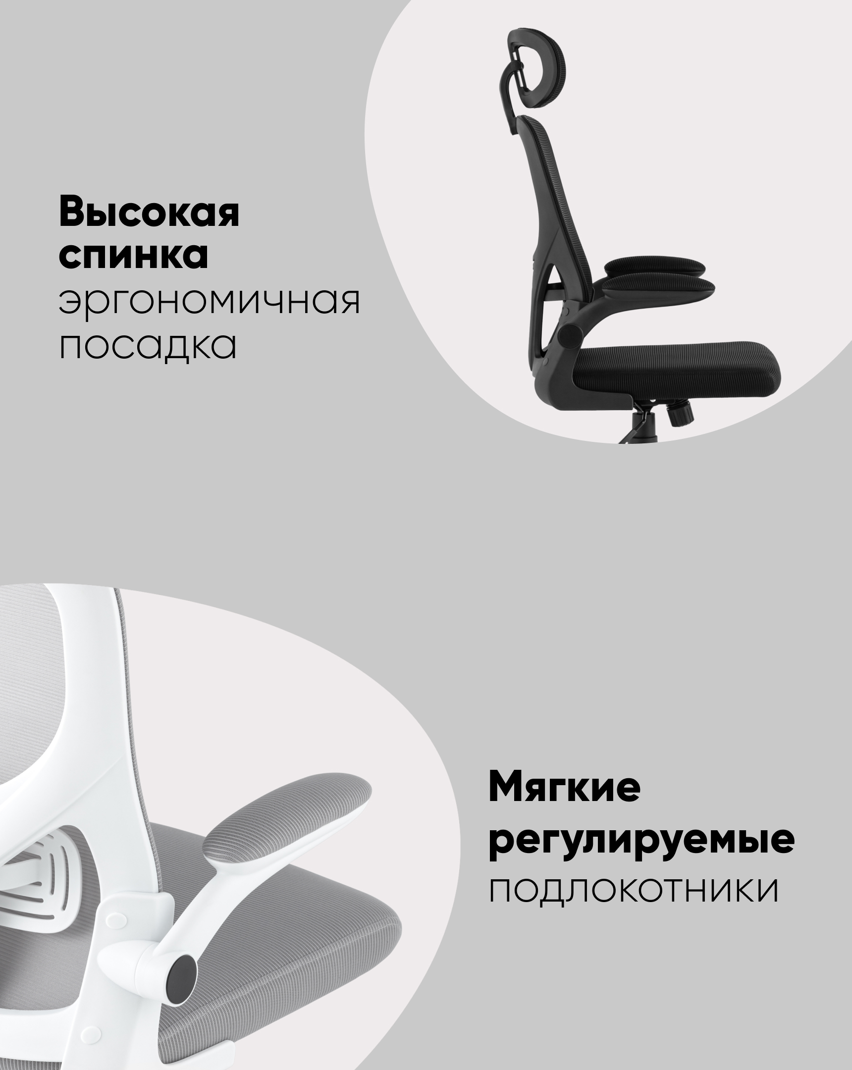 Обивка из сетки на спинке и из сплошной ткани на сиденье смотрится элегантно и стильно - это практичное решение для постоянного использования. Материал не боится повреждений и потертостей, на нем не видны пятна.
