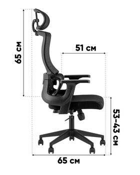 Функциональность и комфорт. Оборудовано механизмом качания типа «топ-ган», позволяя настроить угол наклона спинки и адаптировать кресло под ваши предпочтения. Подлокотники и высокая спинка с эргономичным изгибом обеспечивают оптимальную поддержку для рук и спины. Регулируемая высота сиденья от 43 до 55 см подходит для пользователей разного роста.