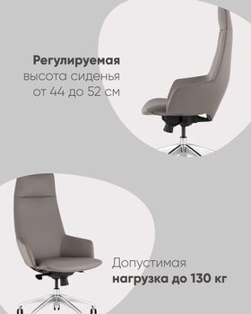 Высокая спинка оказывает качественную поддержку и позволяет провести в кресле долгое время без усталости. Каркас изготовлен из металла и позволяет выдержать нагрузку до 130 кг.