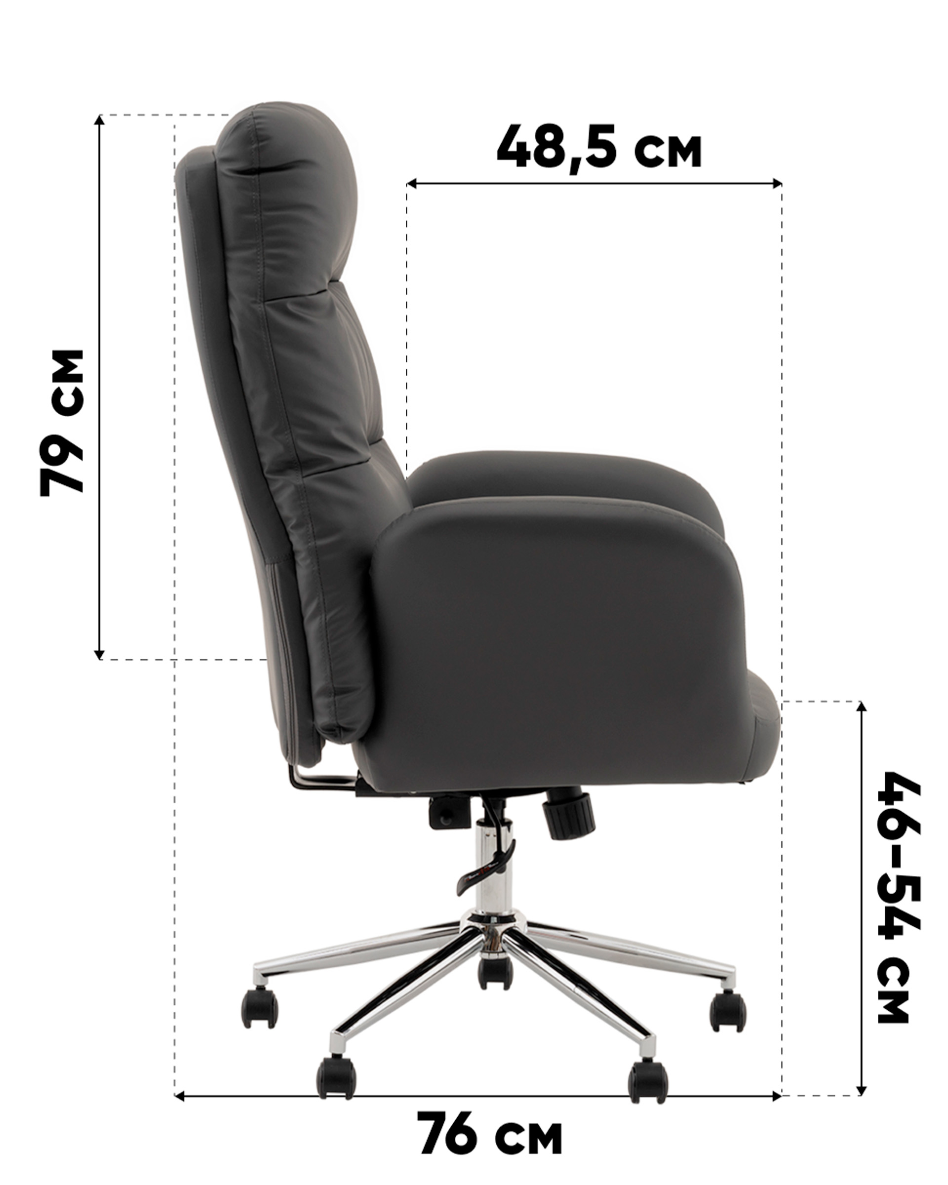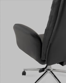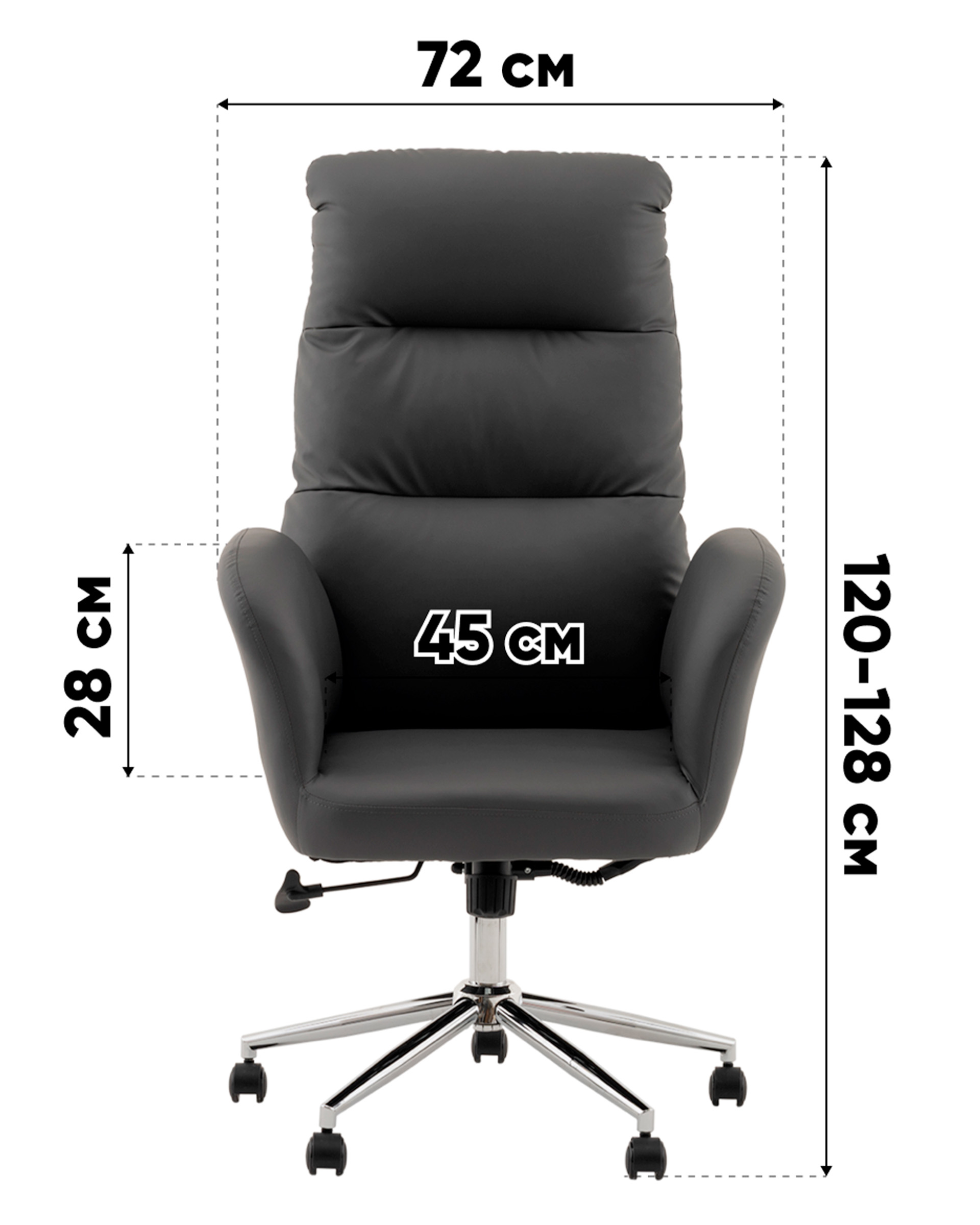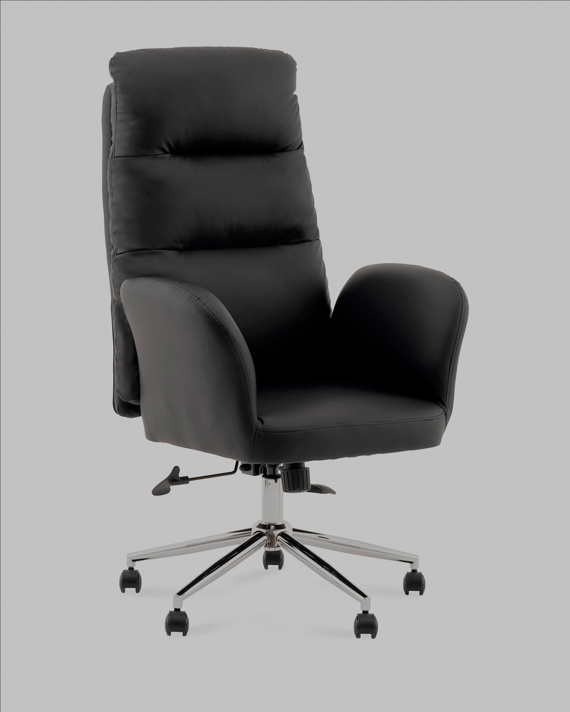Плавные формы подлокотников и продуманная форма спинки создают дополнительную поддержку. Прочная металлическая крестовина и устойчивые нейлоновые ролики рассчитаны на нагрузку до 120 кг, гарантируя долговечность и устойчивость.