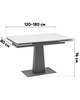 Столешница выполнена из высококачественной керамики (оттенок Carmen light grey) — материала, отличающегося не только эстетикой, но и высокой прочностью. Её мраморная текстура придаёт столу благородный вид, а также гарантирует устойчивость к влаге, загрязнениям и температурным перепадам. Материал не подвержен появлению пятен, царапин и прост в уходе — всё это делает стол идеальным для ежедневного использования.