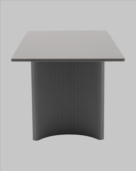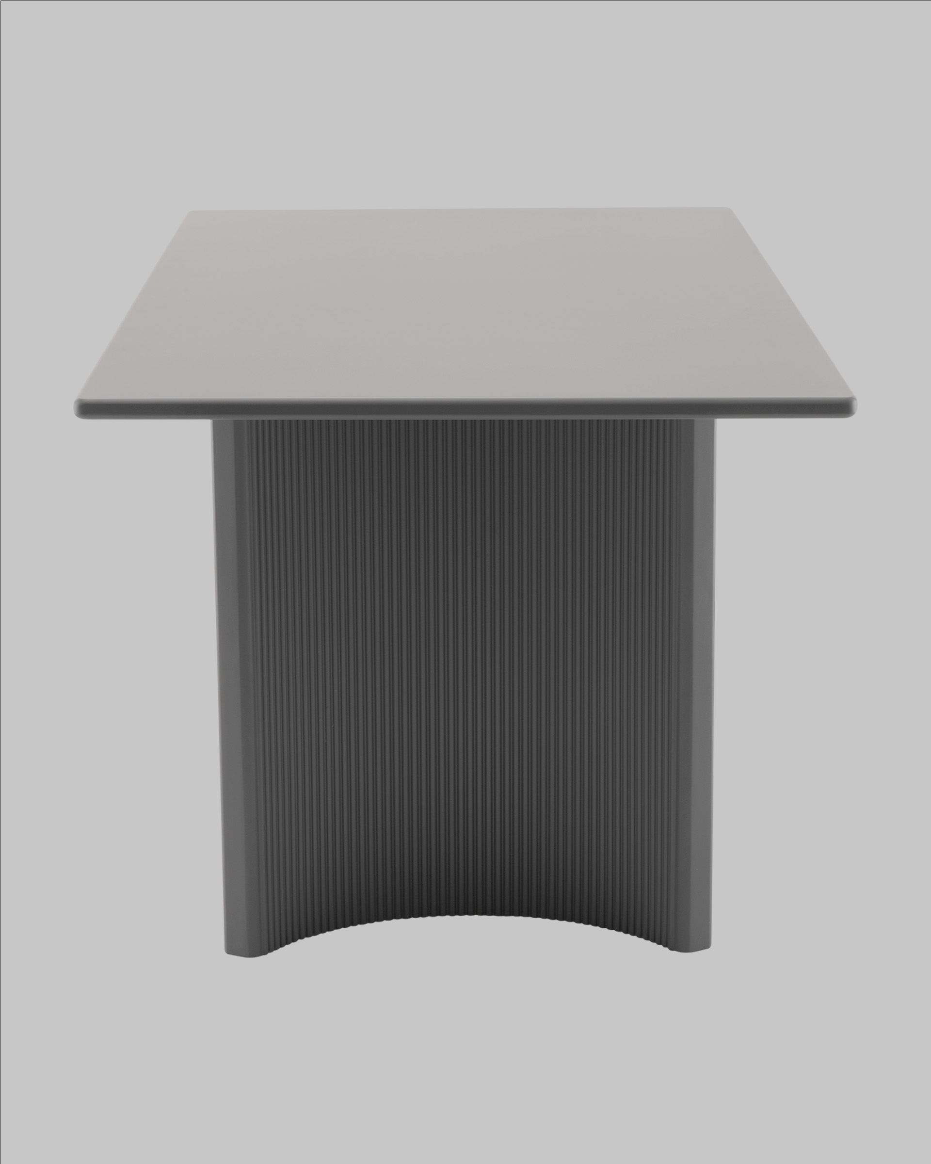 Материалы и дизайн. Столешница выполнена из высококачественного МДФ с покрытием 3D бумагой, что придает столешнице элегантный внешний вид. Толщина столешницы составляет 2,5 см, обеспечивая прочность конструкции. Прямоугольная форма и оригинальные ножки из МДФ с эффектом плиссе добавляет изюминку в общий облик. Серый цвет стола делает его универсальным для различных зон — от дома до общественных пространств.