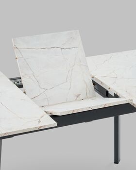 Функциональные особенности Стол оборудован удобным раскладным механизмом «бабочка», который позволяет увеличить рабочую поверхность с 120 до 160 см при ширине 80 см и высоте 76 см. Такое решение даёт возможность с комфортом разместить до 6 персон, делая стол идеальным вариантом как для повседневных ужинов, так и для праздничных застолий.