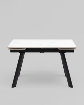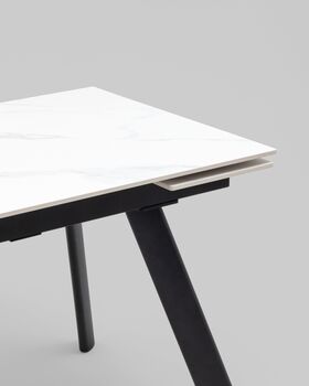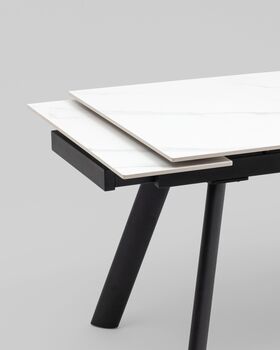 Стол Нэд — это воплощение актуального дизайнерского подхода. Его прямоугольная столешница из белоснежной керамики придаёт интерьеру лёгкость и утончённость. Черные металлические ножки создают эффектный контраст и подчёркивают современный характер модели.