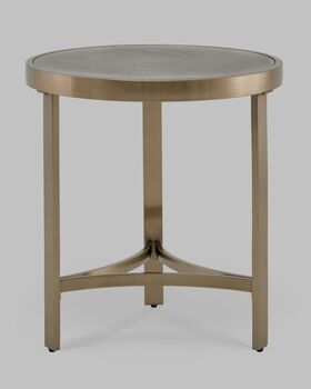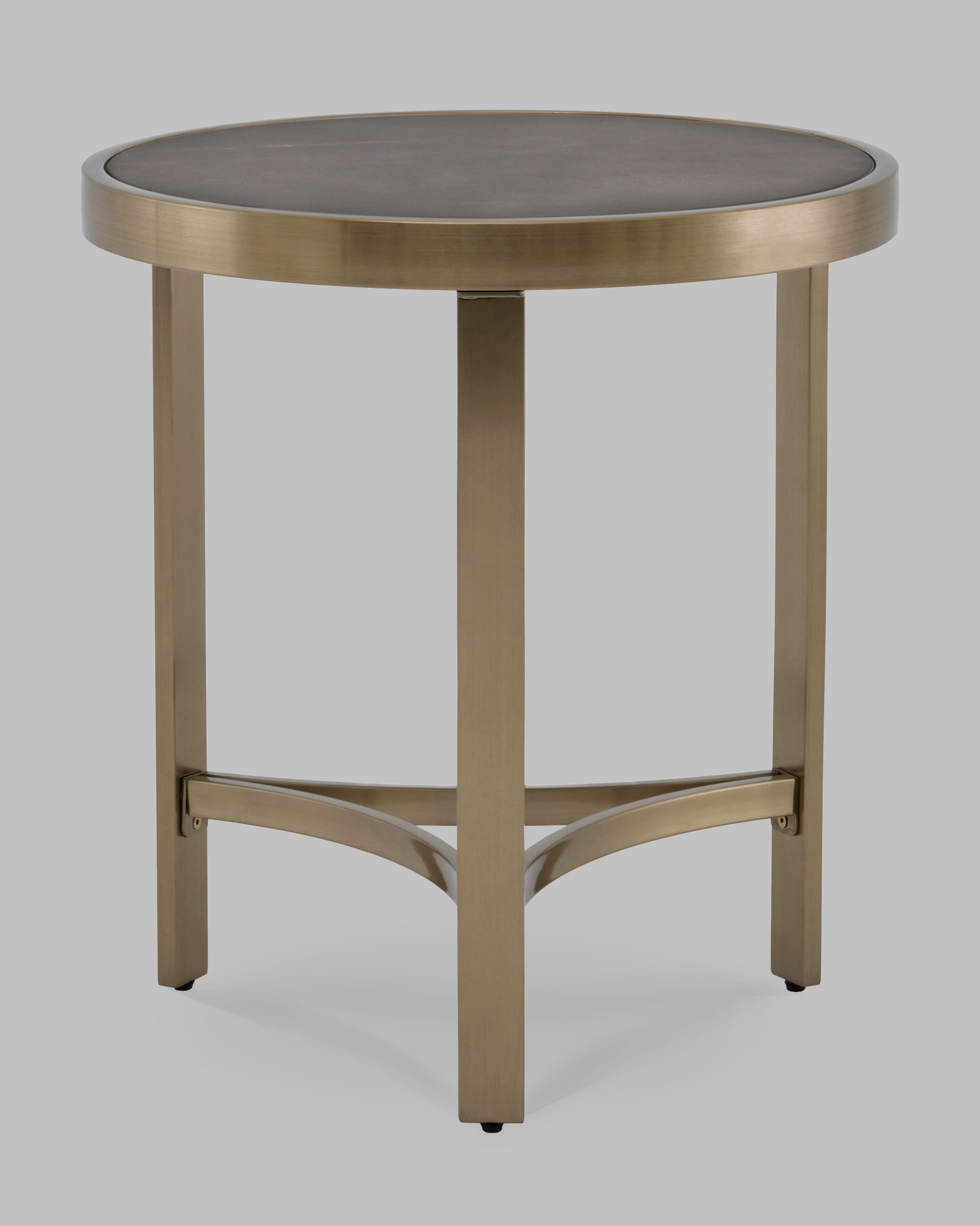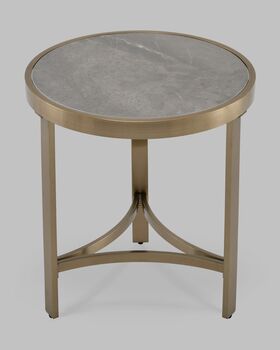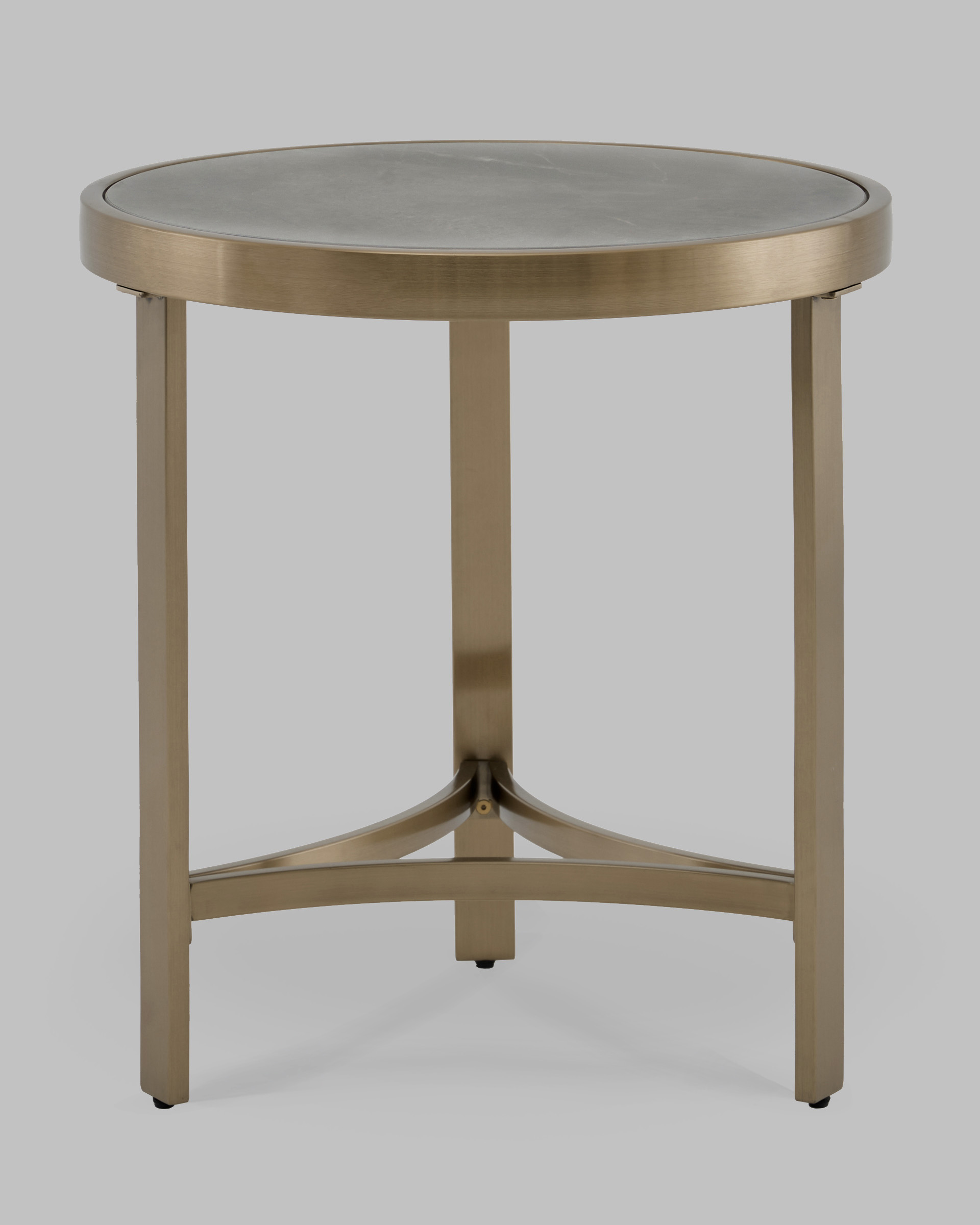 Журнальный столик Адриана — это воплощение утончённой роскоши и современного стиля. Серая столешница с изысканным рисунком под керамику гармонично сочетается с металлическим основанием в цвете шампань. Геометрически выверенная опора с перекрёстными металлическими дугами в основании придаёт дополнительную устойчивость и дизайнерскую выразительность. Такое решение делает столик выразительным акцентом в любом интерьере.