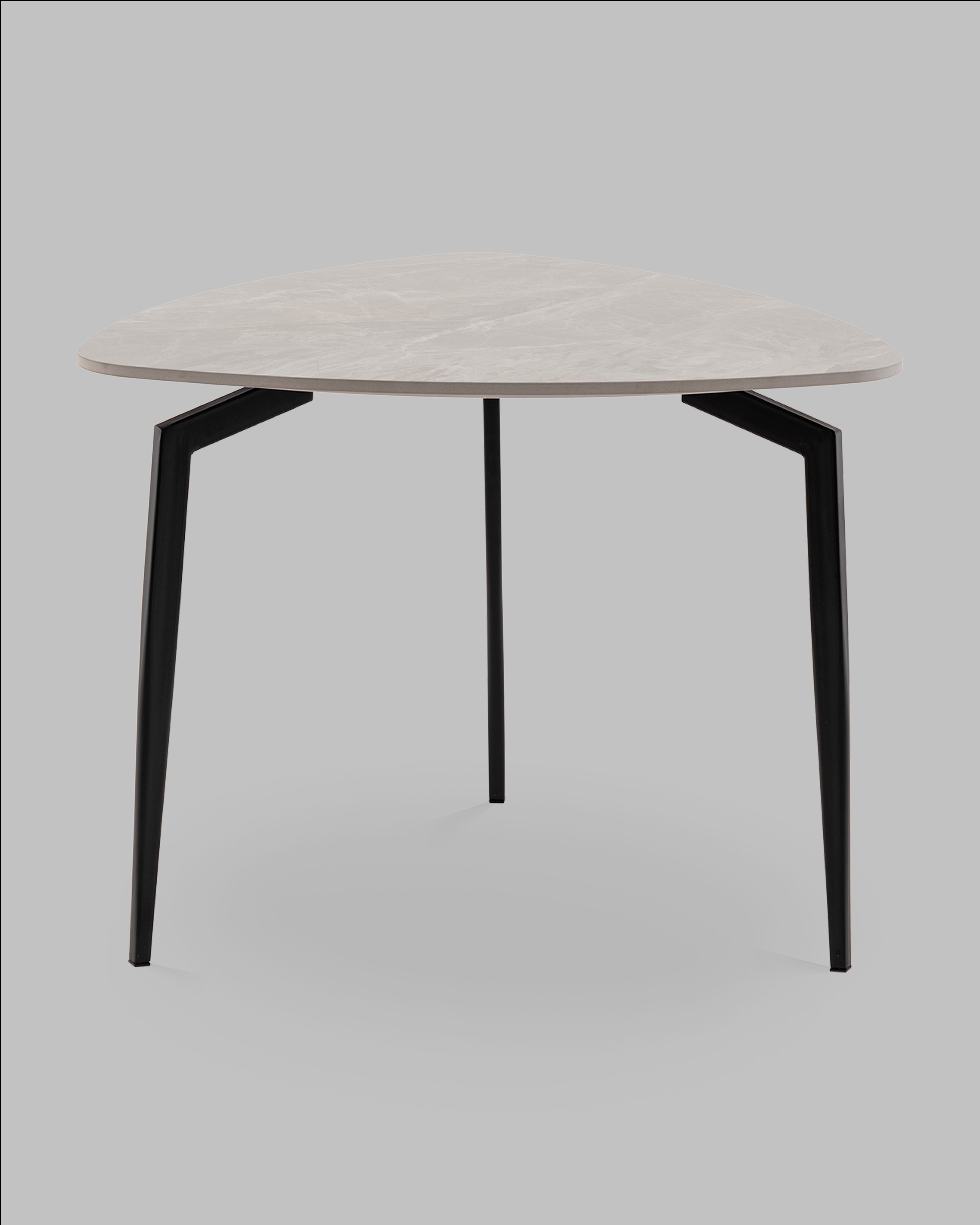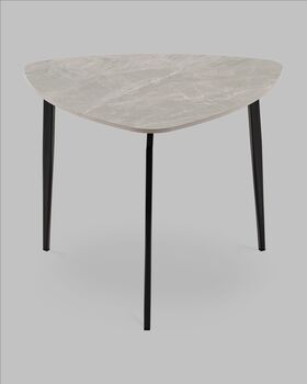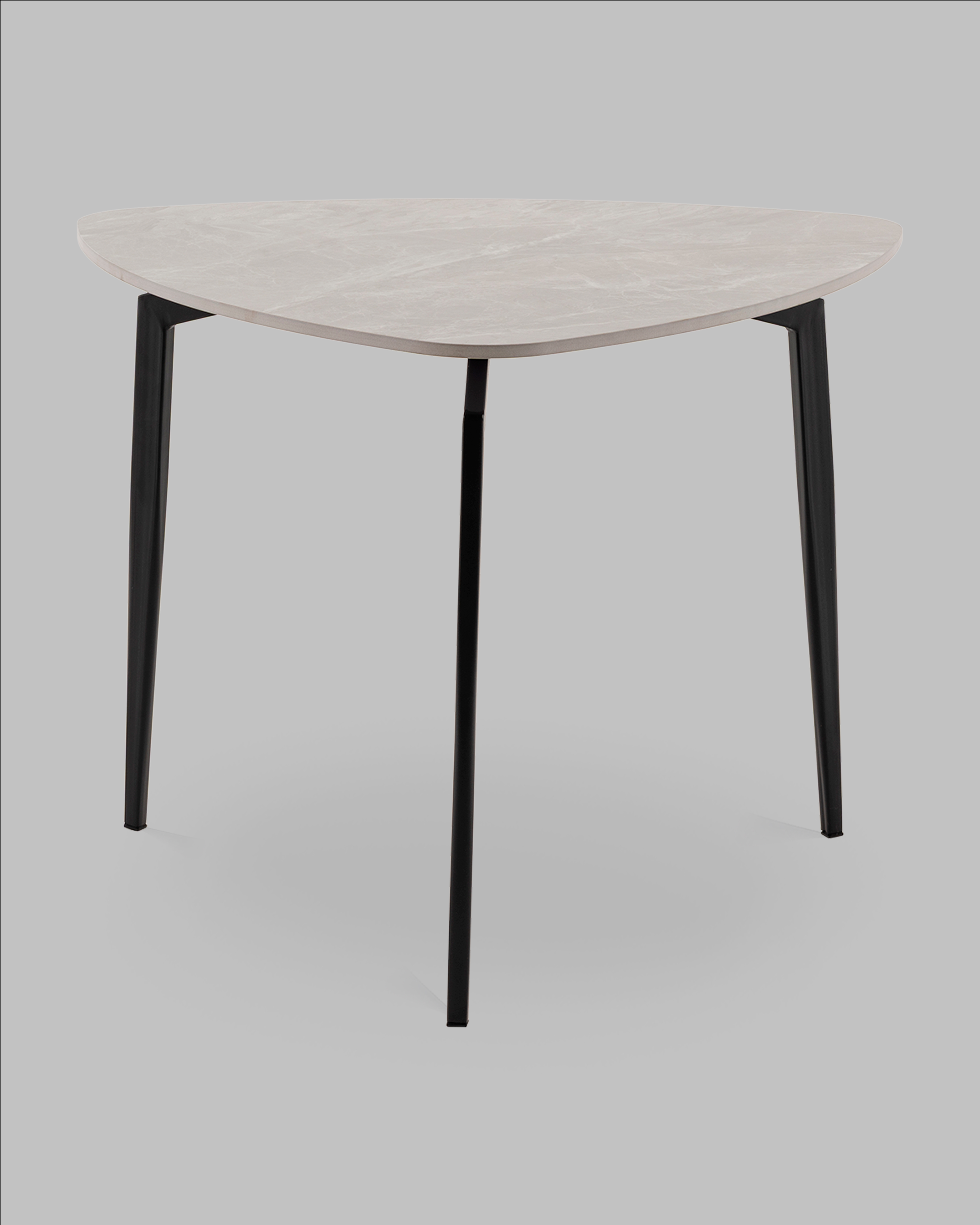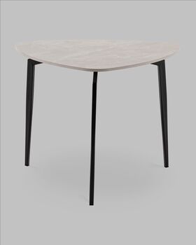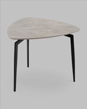 Журнальный столик Alara — это стильный акцент для современного интерьера. Его необычная треугольная форма со скруглёнными углами выделяется на фоне классических решений и придаёт интерьеру индивидуальность и лёгкость. Изящные три металлические ножки в чёрном цвете обеспечивают устойчивость и визуально «поднимают» столик, создавая ощущение воздушности конструкции.