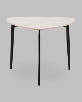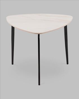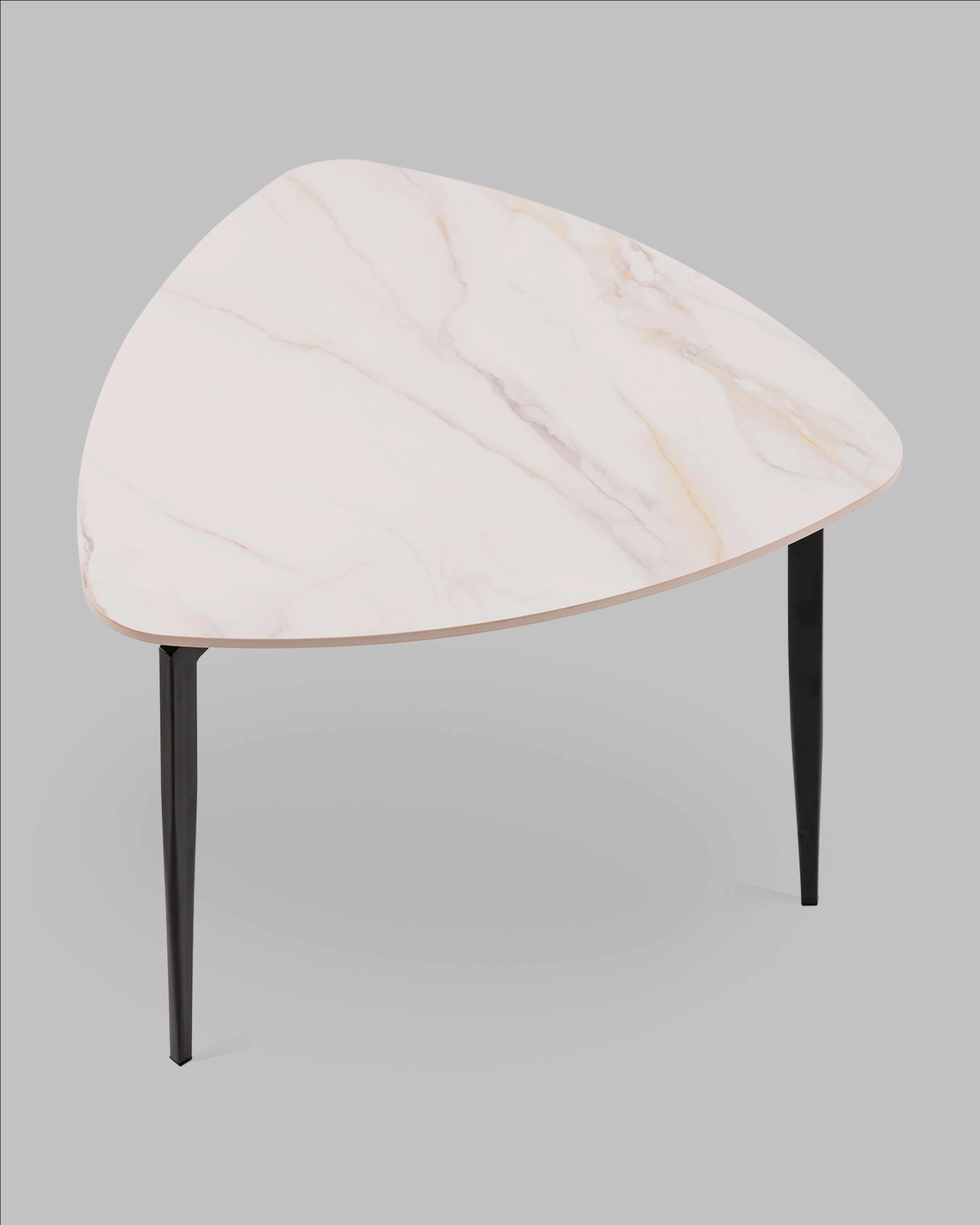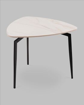 Журнальный столик Alara — это стильный акцент для современного интерьера. Его необычная треугольная форма со скруглёнными углами выделяется на фоне классических решений и придаёт интерьеру индивидуальность и лёгкость. Изящные три металлические ножки в чёрном цвете обеспечивают устойчивость и визуально «поднимают» столик, создавая ощущение воздушности конструкции.