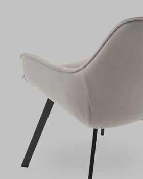 Удобство и надёжность в каждой детали Высокая спинка с поддержкой боковин и плавные подлокотники обеспечивают комфортную посадку для долгих встреч и бесед. Прочные металлические ножки в чёрном цвете не только подчёркивают современный силуэт, но и гарантируют надёжность конструкции при нагрузке до 120 кг.
