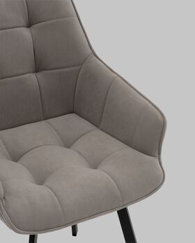 Стул для кухни Амальри привлекает взгляд благодаря своей мягкой велюровой обивке в благородном бежевом оттенке. Глубокая простёжка на сиденье добавляет текстурности и визуального объёма, создавая уютный и стильный образ, который украсит любой интерьер.