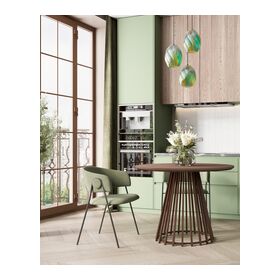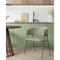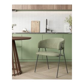 Стильный кухонный стул с оригинальной формой спинки. В качестве обивки используется мягкий велюр, износостойкий, гигроскопичный материал с приятной на ощупь бархатистой фактурой. Металлический каркас в черном цвете огибает спинку и выступает аккуратным акцентом модели. Широкое сиденье обеспечивает удобную посадку и уют.