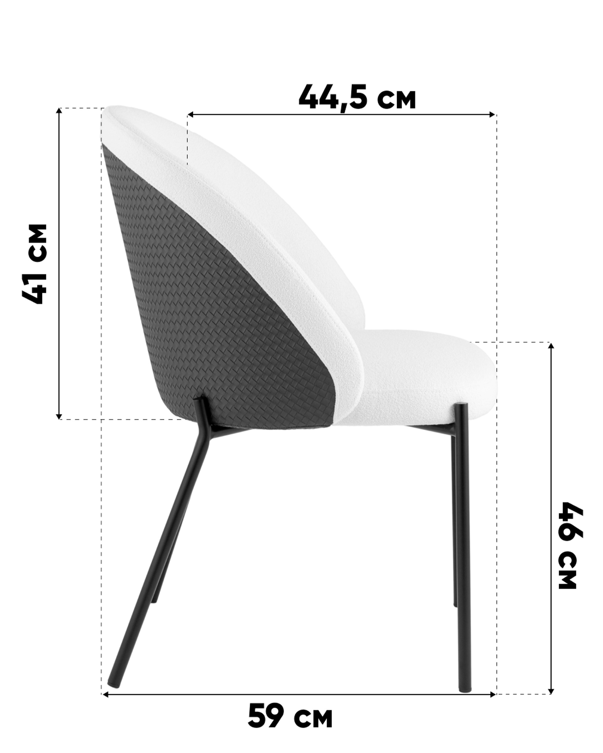 Каркас и ножки стула изготовлены из прочного металла с чёрным матовым покрытием. Такая конструкция обеспечивает надёжность и долговечность. Стул выдерживает нагрузку до 120 кг, оставаясь устойчивым даже при активном использовании.