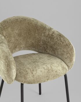 Модель Bren выполнена в современном минималистичном стиле с округлыми плавными линиями. Велюр зеленого цвета и чёрные металлические ножки создают стильный контраст, который гармонично впишется в любой интерьер.